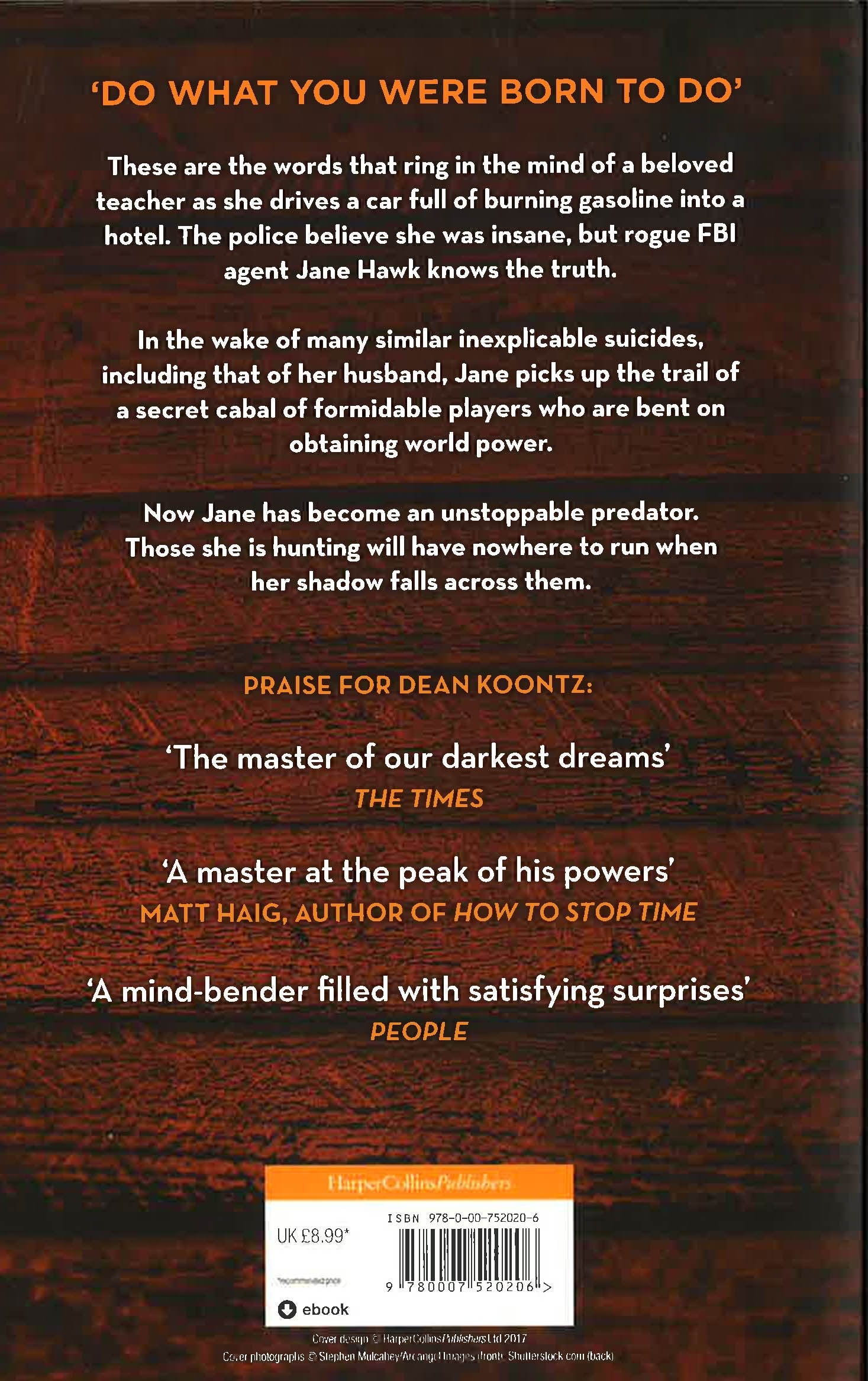 It's either fight, or die... The second gripping thriller in an exciting new series featuring FBI agent Jane Hawk, from the master of suspense and New York Times No.1 bestselling author. `Do what you were born to do' These are the words that ring in the mind of a beloved teacher as she drives a car full of burning gasoline into a hotel. The police believe she was insane, but rogue FBI agent Jane Hawk knows the truth. In the wake of many similar inexplicable suicides, including that of her husband, Jane picks up the trail of a secret cabal of formidable players who are bent on obtaining world power. Now Jane has become an unstoppable predator. Those she is hunting will have nowhere to run when her shadow falls across them.
