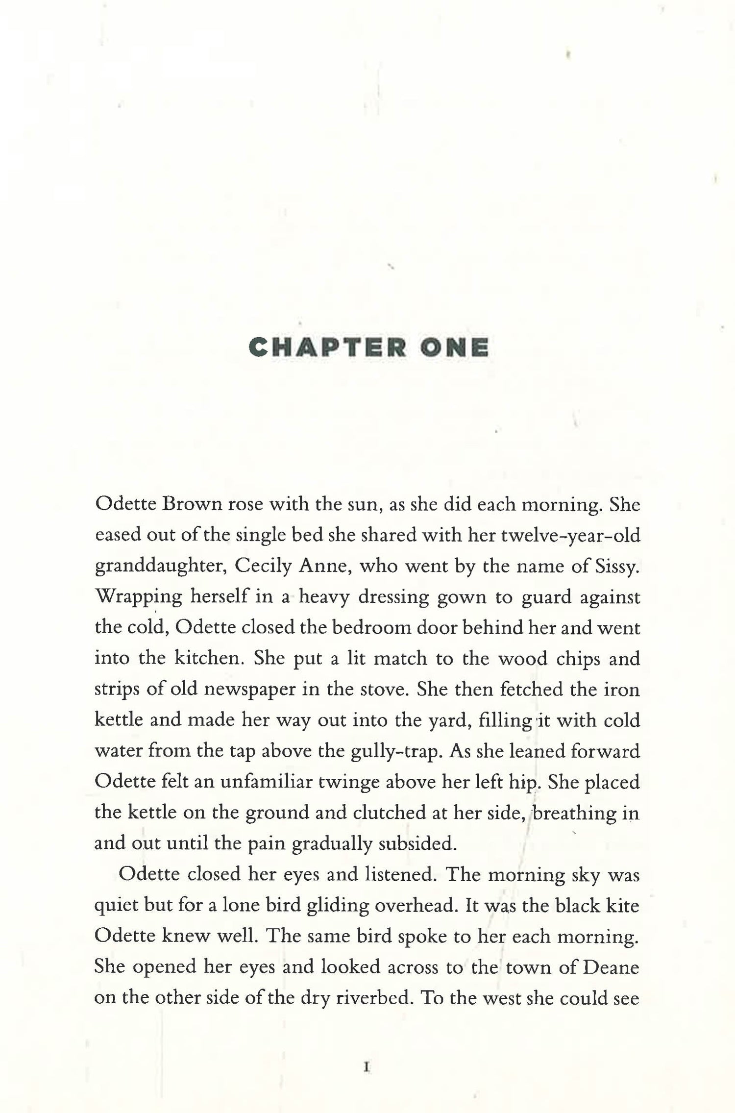 For thirteen years, Odette has quietly raised her granddaughter without drawing notice from welfare authorities who remove fair-skinned Aboriginal children from their families. But the arrival of a new policeman with cruel eyes and a rigid by-the-book attitude throws the Brown women's lives off-kilter. It will take all of Odette's courage and cunning to save Sissy from the authorities, and maybe even lead her to find her daughter.