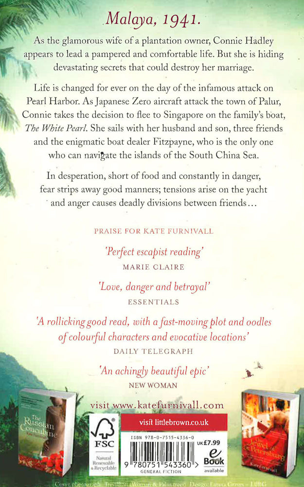 Set against the attack on Pearl Harbour, the breathtakingly epic new novel from the bestselling author of The Russian Concubine *** THE Sunday Times TOP TEN BESTSELLING AUTHOR *** 'Wonderful . . . hugely ambitious and atmospheric' Kate Mosse Discover a brilliant story of love, danger, courage and betrayal, from the internationally bestselling author of The Betrayal. ***** Malaya, 1941.As the glamorous wife of a plantation owner, Connie Hadley appears to lead a pampered and comfortable life. But she is hiding devastating secrets that could destroy her marriage. Life is changed for ever on the day of the infamous attack on Pearl Harbor. As Japanese Zero aircraft attack the town of Palur, Connie takes the decision to flee to Singapore on the family's boat, The White Pearl. She sails with her husband and son, three friends and the enigmatic boat dealer Fitzpayne, who is the only one who can navigate the islands of the South China Sea. In desperation, short of food and constantly in danger, fear strips away good manners; tensions arise on the yacht and anger causes deadly divisions between friends . . . Further praise for Kate Furnivall: 'Superb storytelling' Dinah Jefferies 'A thrilling plot ... Fast-paced with a sinister edge' Times 'A thrilling, compelling read. Wonderful!' Lesley Pearse 'Gripping . . . poignant, beautifully written ...will capture the reader to the last' Sun 'Truly captivating' Elle 'Perfect escapist reading' Marie Claire 'An achingly beautiful epic' New Woman 'A rollicking good read' Daily Telegraph