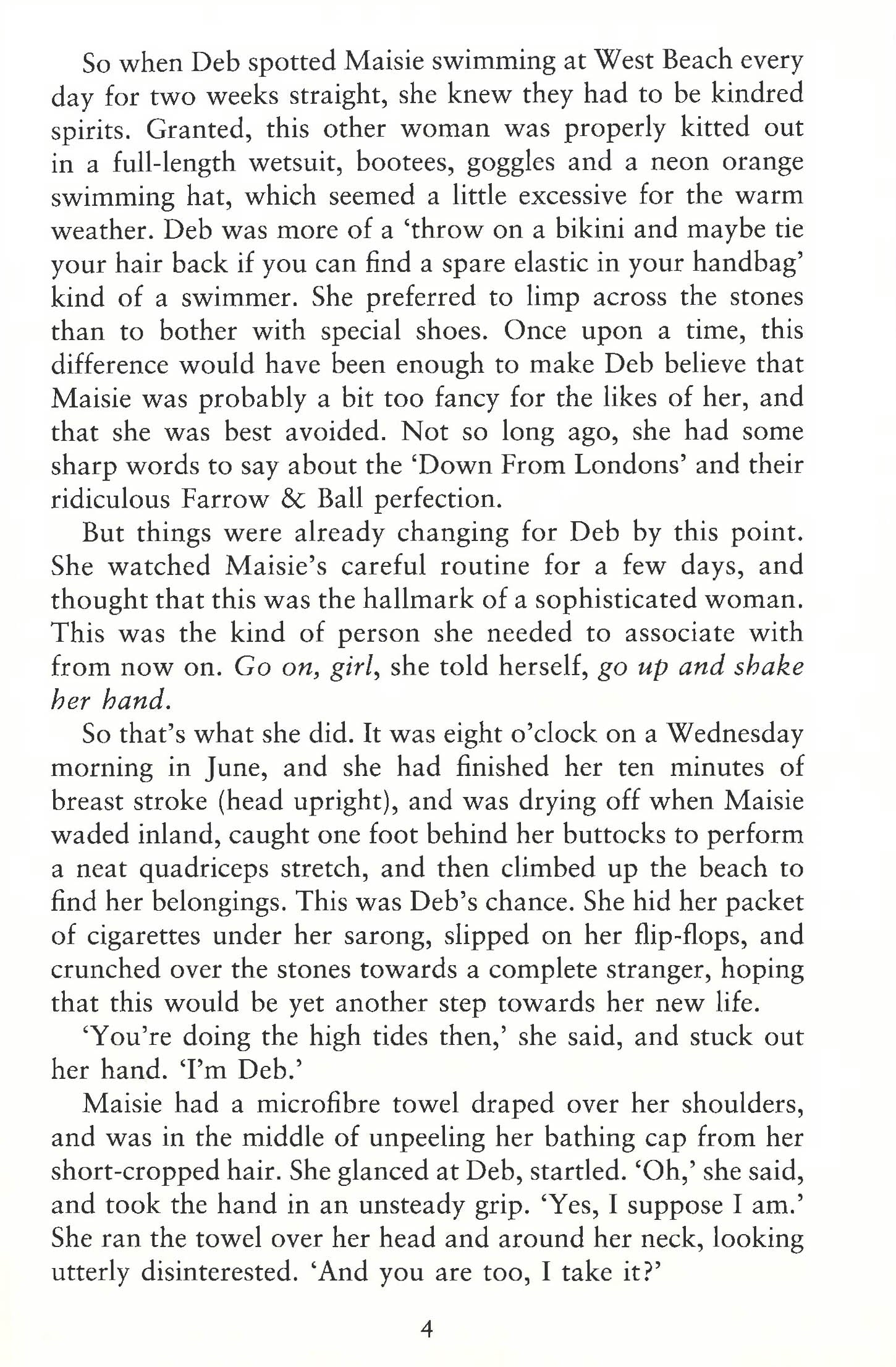 THE WHITSTABLE HIGH TIDE SWIMMING CLUB is a heartwarming novel about second chances. For readers of Jill Mansell, Cathy Bramley, Lucy Diamond and Carole Matthews Dive into THE WHITSTABLE HIGH TIDE SWIMMING CLUB - the irresistible, feel-good novel from Katie May. Join Debs and Maisie and the high tide swimmers as they make waves in life, love and friendship. Only the truly devoted manage to swim every day at Whitstable, because the sea's only deep enough at high tide. So when Deb (ageing bikini, sunglasses) and Maisie (black wetsuit, swimming shoes, goggles) keep meeting on Reeves Beach, they strike up an unlikely friendship based on their love of swimming and their recent divorces.They swim early in the morning and late at night; through sea-fogs, rain and glorious sunny days. Soon, they are joined by other high tide swimmers, each with a crisis of their own to weather. Ann, a bossy organiser, is caring for her elderly mother at home; Julie has somehow (although she's not quite sure how) managed to produce three children under school age; and Chloe, a bright, brittle girl of fifteen, finds calmness in the water. Quiet, anxious Bill is initially thought to be a peeping Tom, before being welcomed into the heart of the club.When the swimmers discover plans for their beach to be paved over for a leisure complex, they find a higher purpose that bonds them together, and exposes their fragile worlds to public scrutiny.THE WHITSTABLE HIGH TIDE SWIMMING CLUB is a book about the power of female friendship, that never loses sight of the complicated truths behind the lives of women who - from the outside - seem to take everything in their stride. It's also a song to the author's home town of Whitstable, where the sea is smooth, the shingle is painful on bare feet, and the air is full of possibilities.