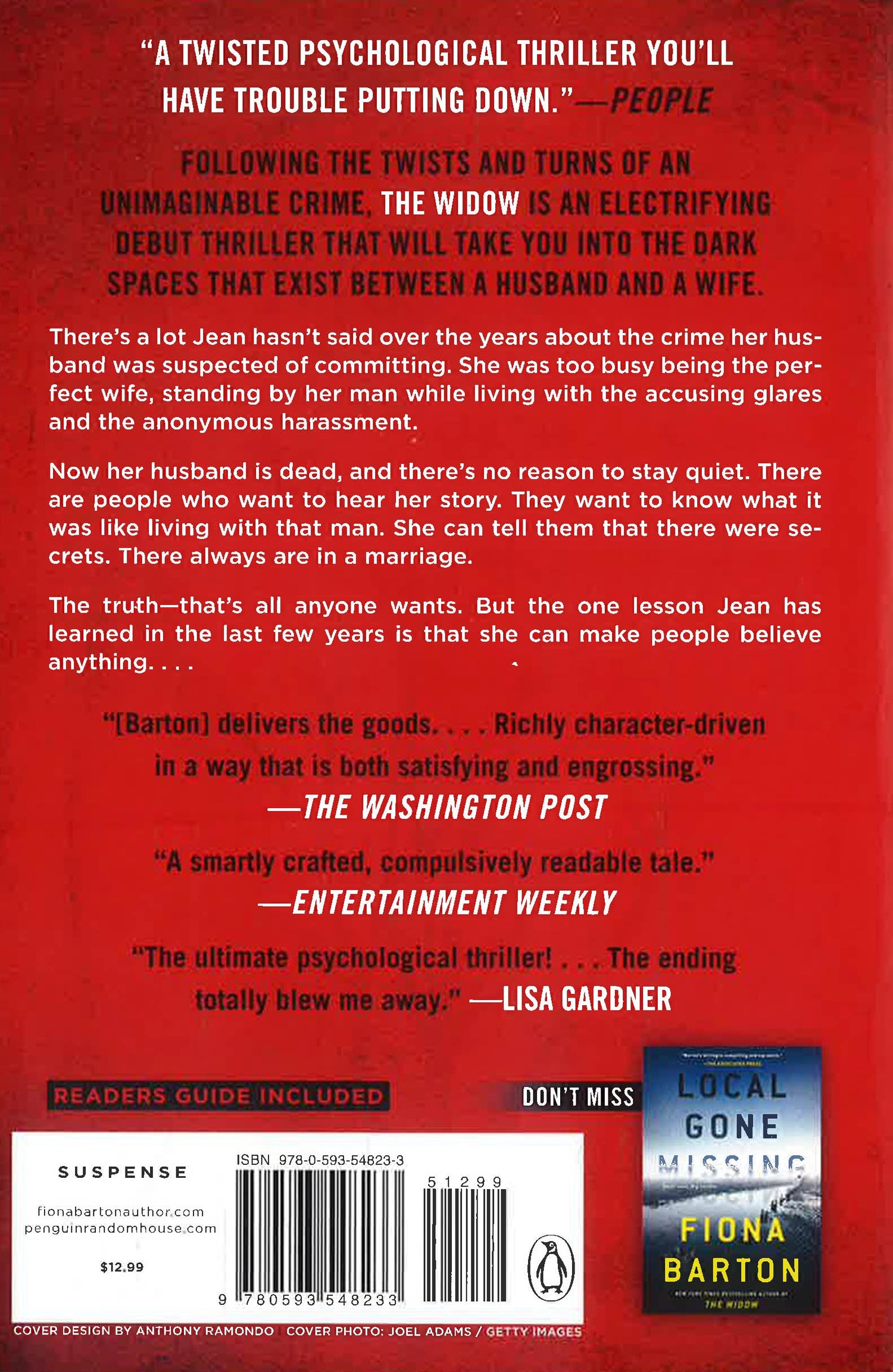 Novel. There?s a lot Jean hasn?t said over the years about the crime her husband was suspected of committing. She was too busy being the perfect wife, standing by her man while living with the accusing glares and the anonymous harassment. Now her husband is dead, and there's no reason to stay quiet.