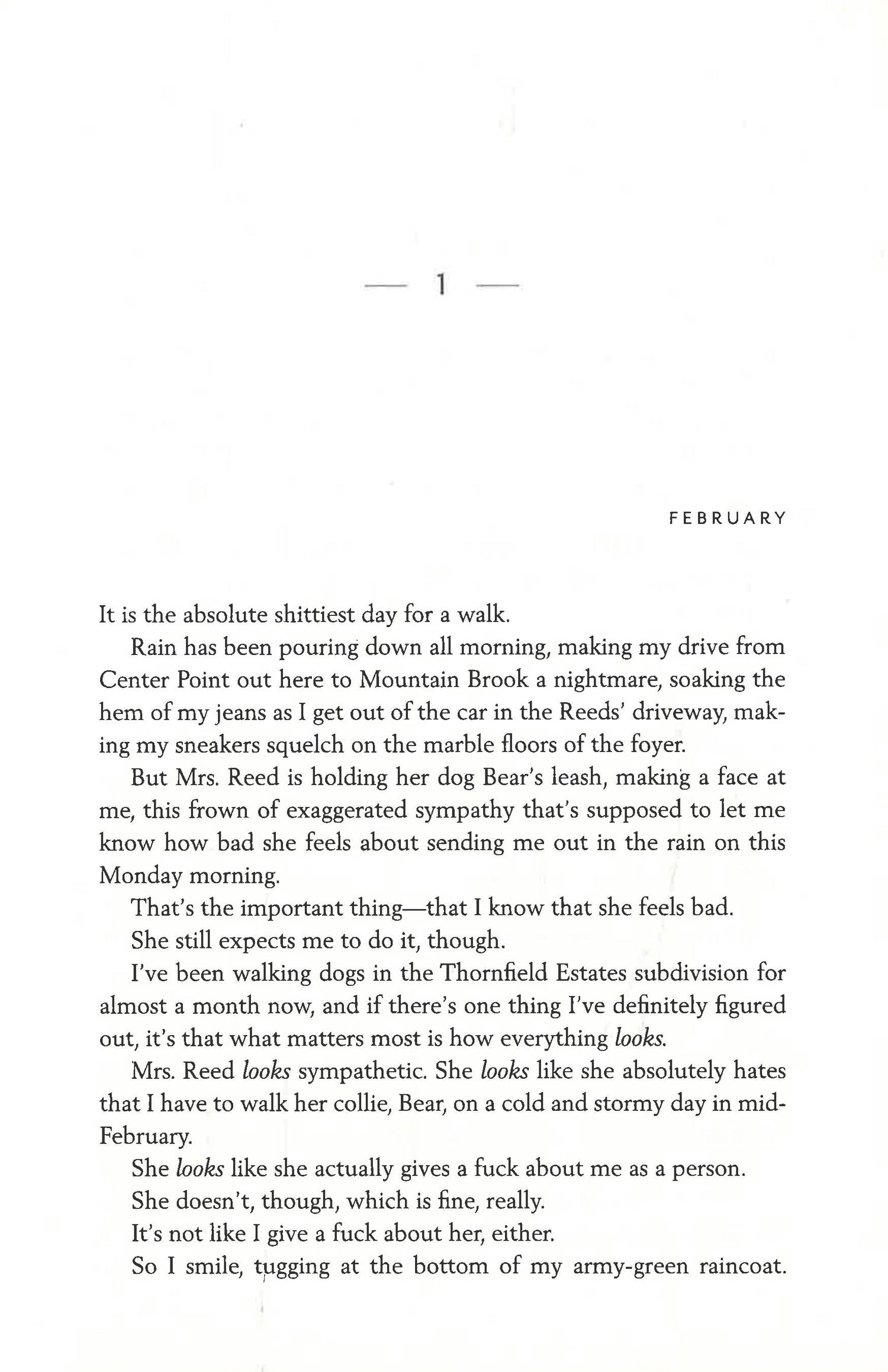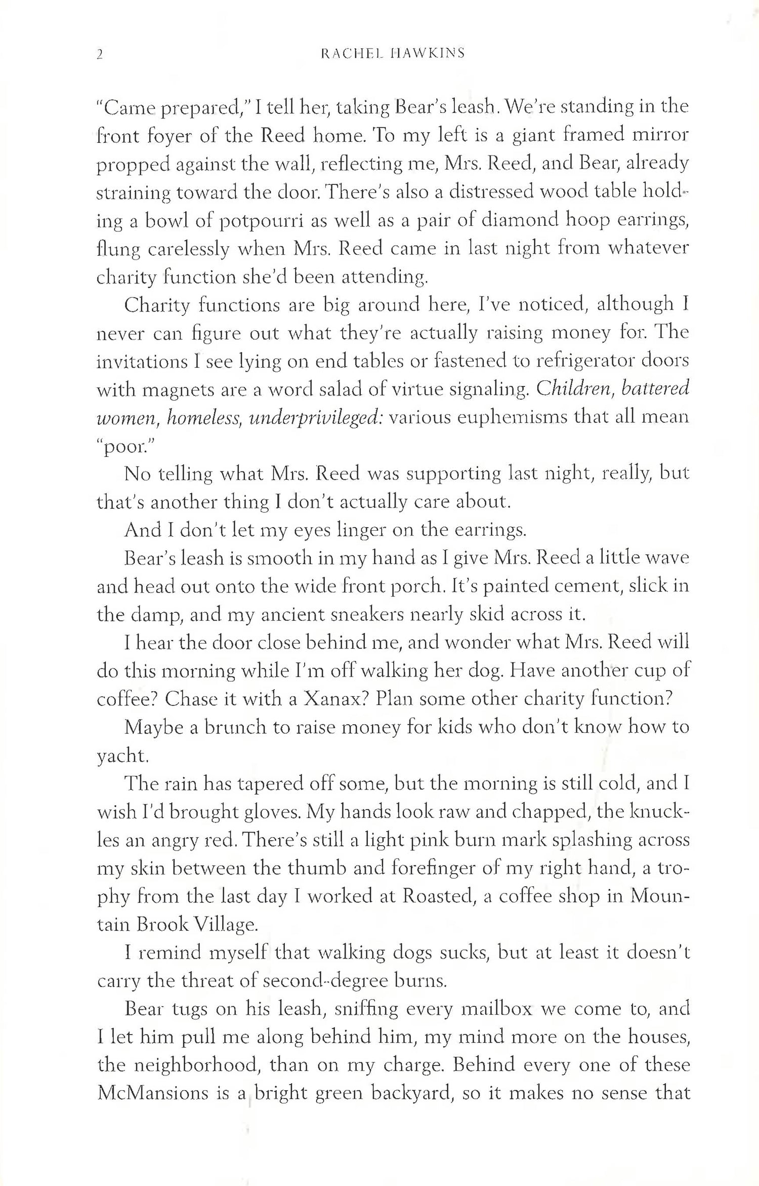 Meet Jane. Newly arrived to Birmingham, Alabama, Jane is a broke dog-walker in Thornfield Estates--a gated community full of McMansions, shiny SUVs, and bored housewives. The kind of place where no one will notice if Jane lifts the discarded tchotchkes and jewelry off the side tables of her well-heeled clients. Where no one will think to ask if Jane is her real name.