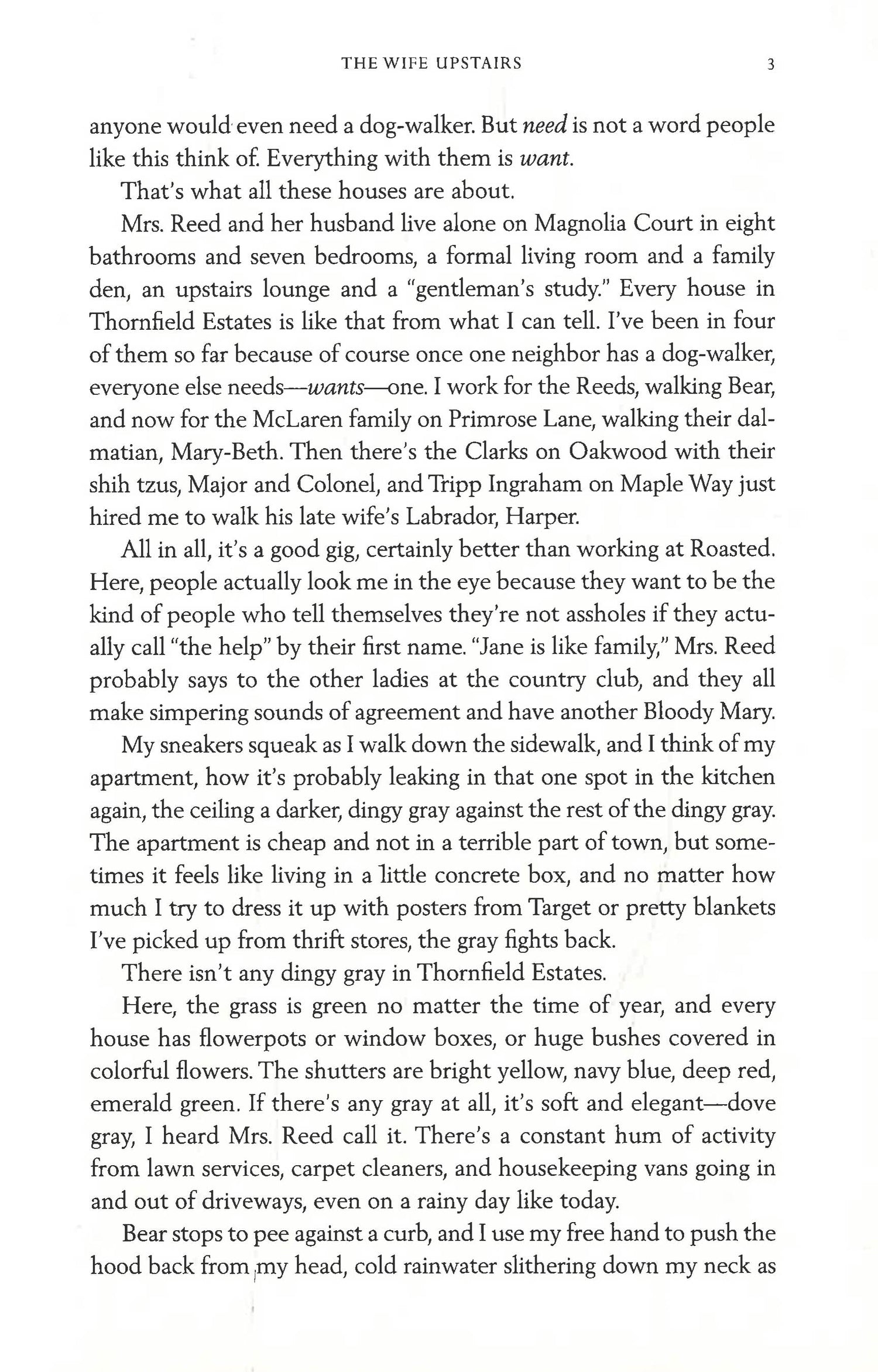 But her luck changes when she meets Eddie Rochester. Recently widowed, Eddie is Thornfield Estates' most mysterious resident. His wife, Bea, drowned in a boating accident with her best friend, their bodies lost to the deep. Jane can't help but see an opportunity in Eddie--not only is he rich, brooding, and handsome, he could also offer her the kind of protection she's always yearned for.