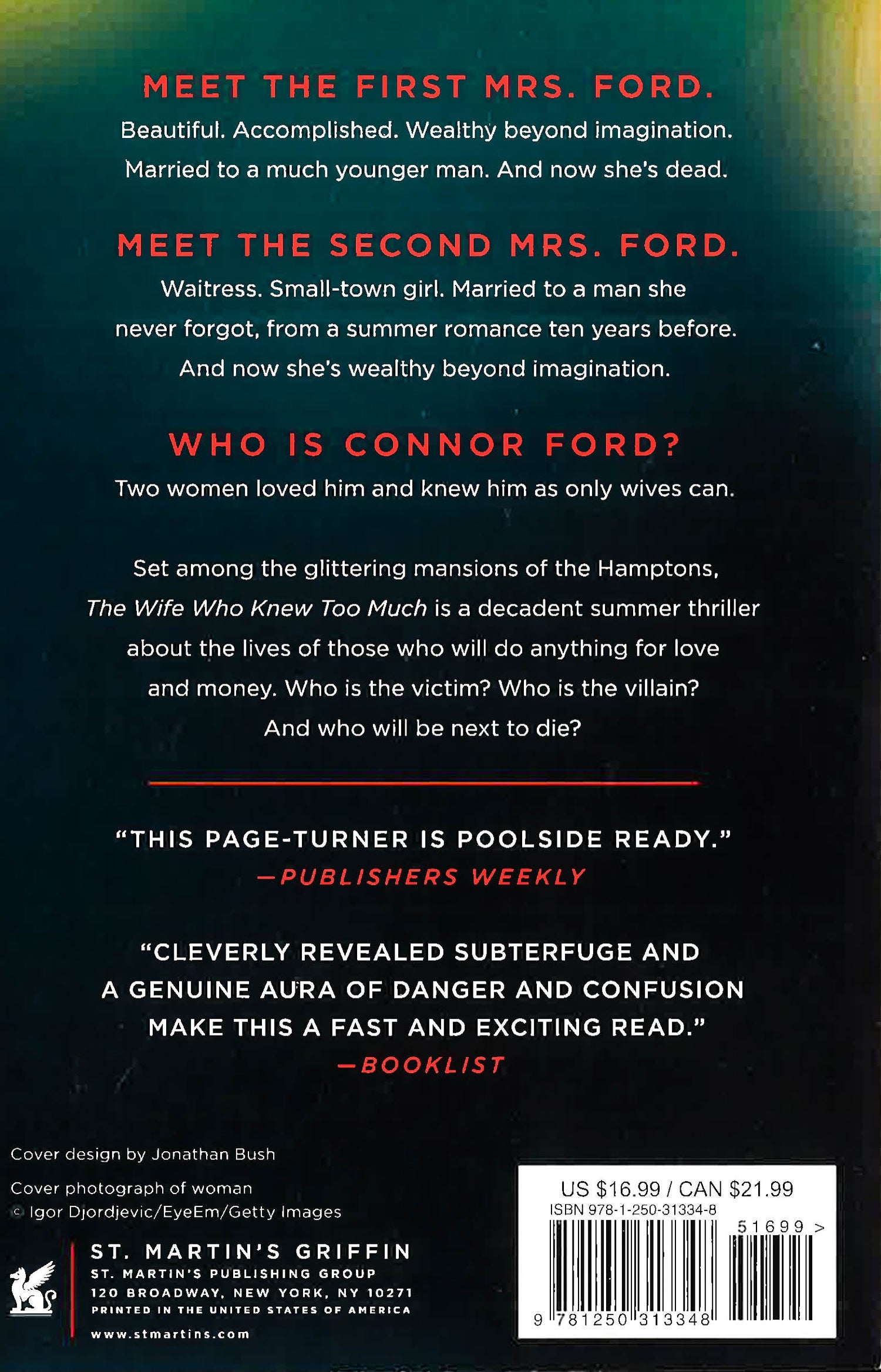 The Wife Who Knew Too Much is a decadent summer thriller about the lives of those who will do anything for love and money. Who is the victim? Who is the villain? And who will be next to die?