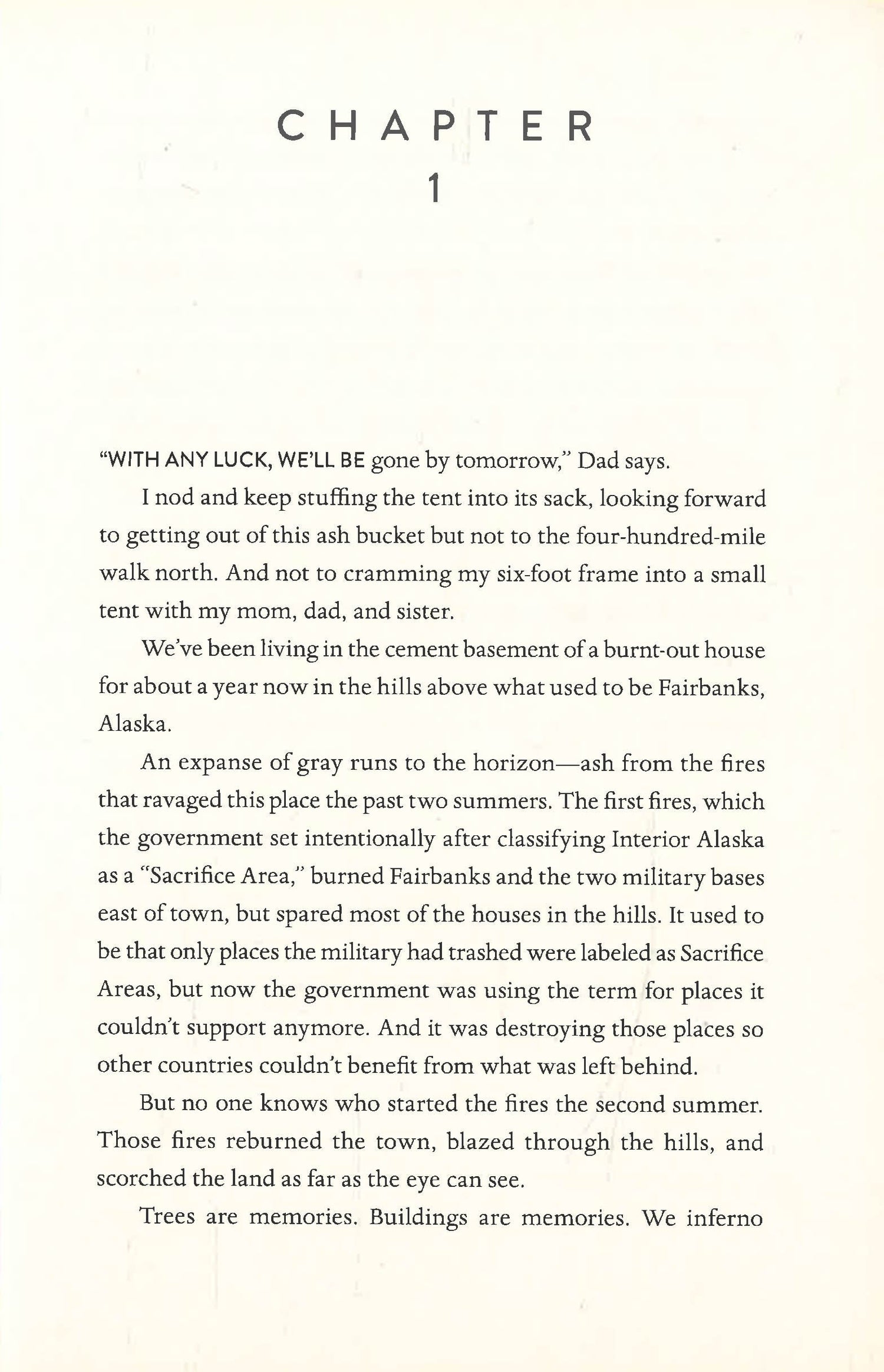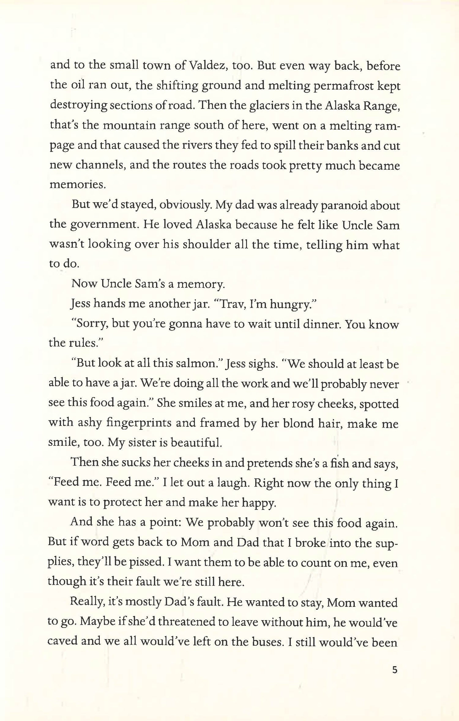 Natural disasters and a breakdown of civilization have cut off Alaska from the world and destroyed its landscape. Now, as food runs out and the few who remain turn on each other, Travis and his younger sister, Jess, must cross hundreds of miles in search of civilization.