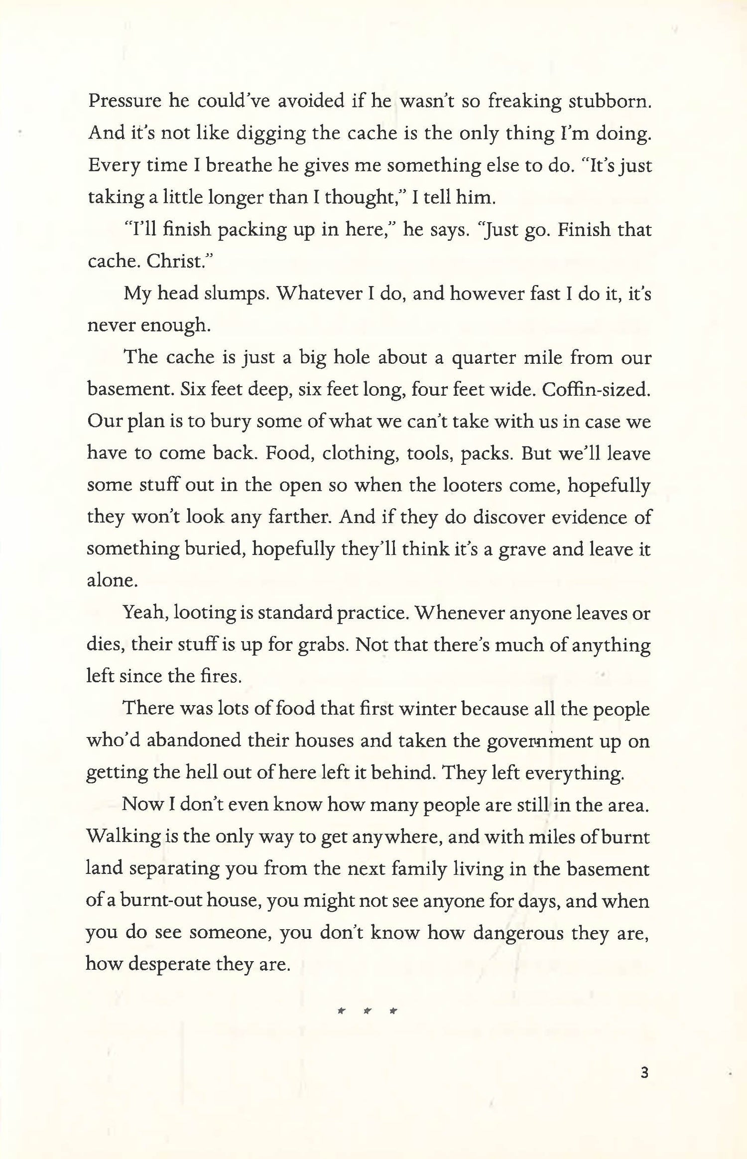 Travis and Jess will make a few friends and a lot of enemies on their terrifying journey across the ruins of today’s world―and they’ll have to fight for what they believe in as they see how far people will go to survive.