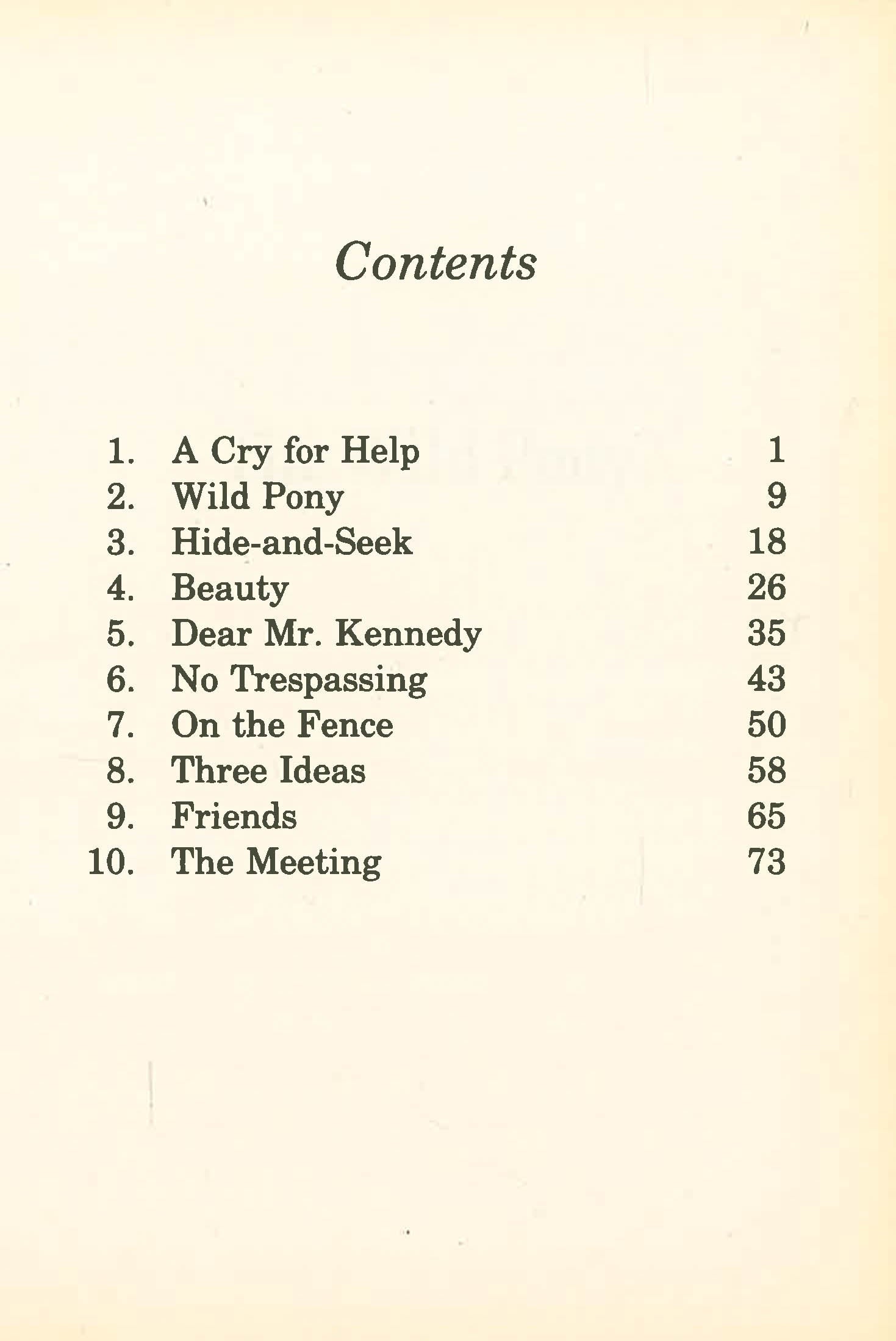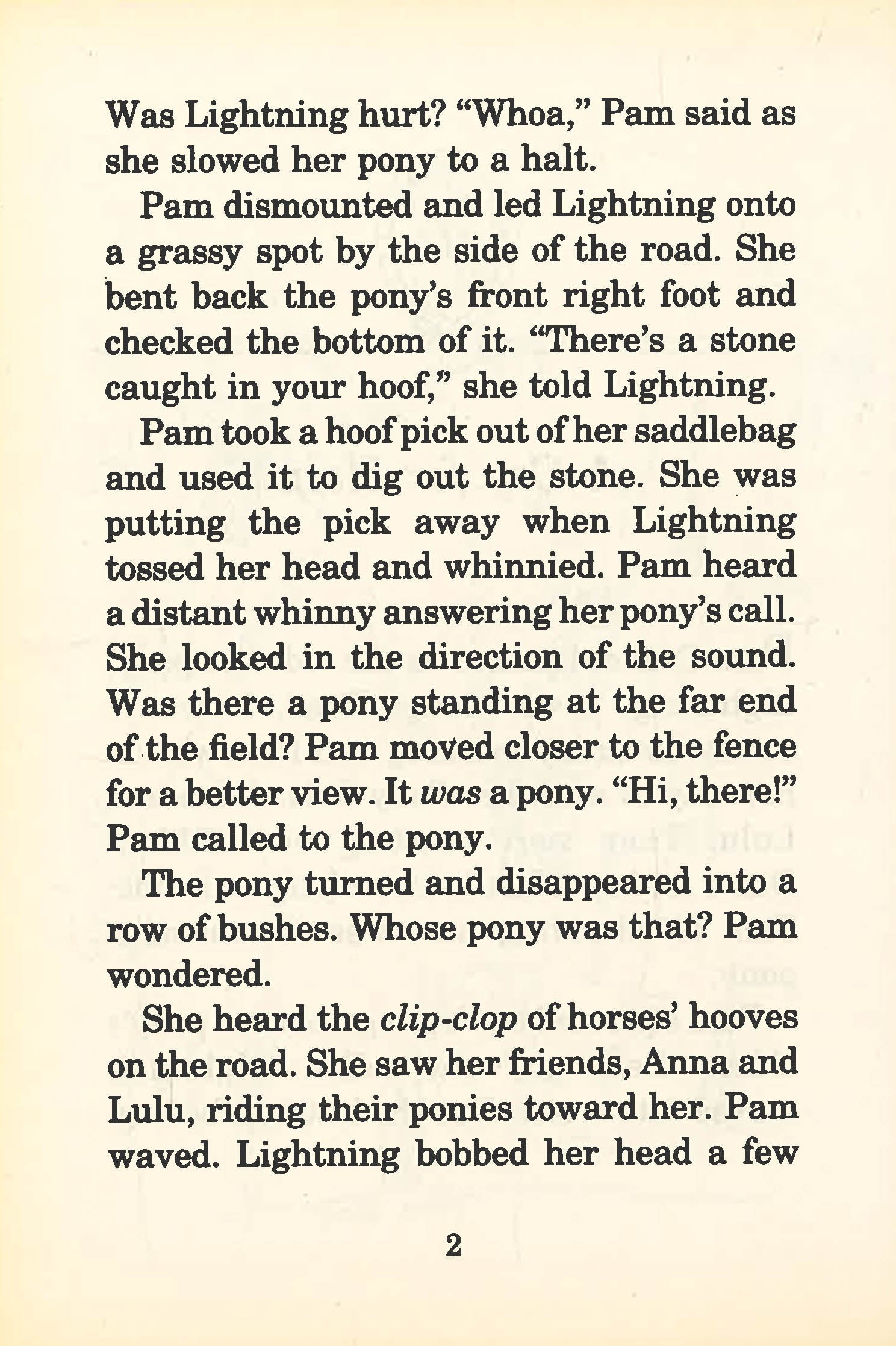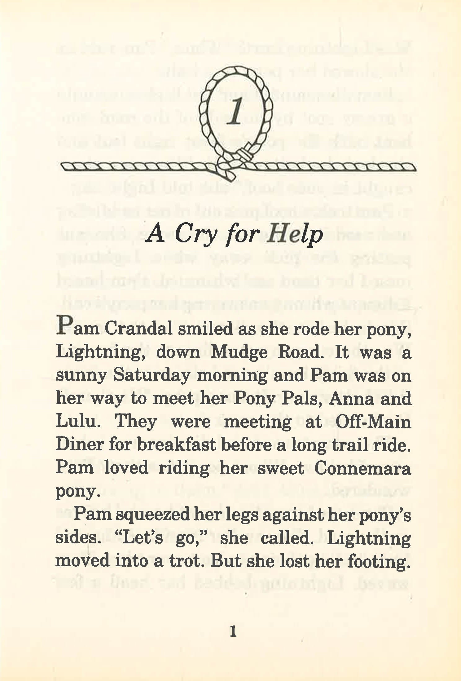 Discovering a skinny, neglected pony near a vacant house, the Pony Pals learn that the horse is being sold for salvage and that they will have to trespass on private property if they are to save him.