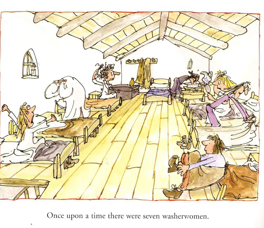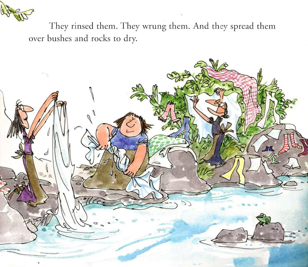 Once upon a time there were seven unhappy washerwomen. They had far too much washing to do and the owner of the laundry, Mr. Balthazar Tight, was simply dreadful! See what happens when these feisty washerwomen decide to escape from a very large pile of laundry and go on strike!