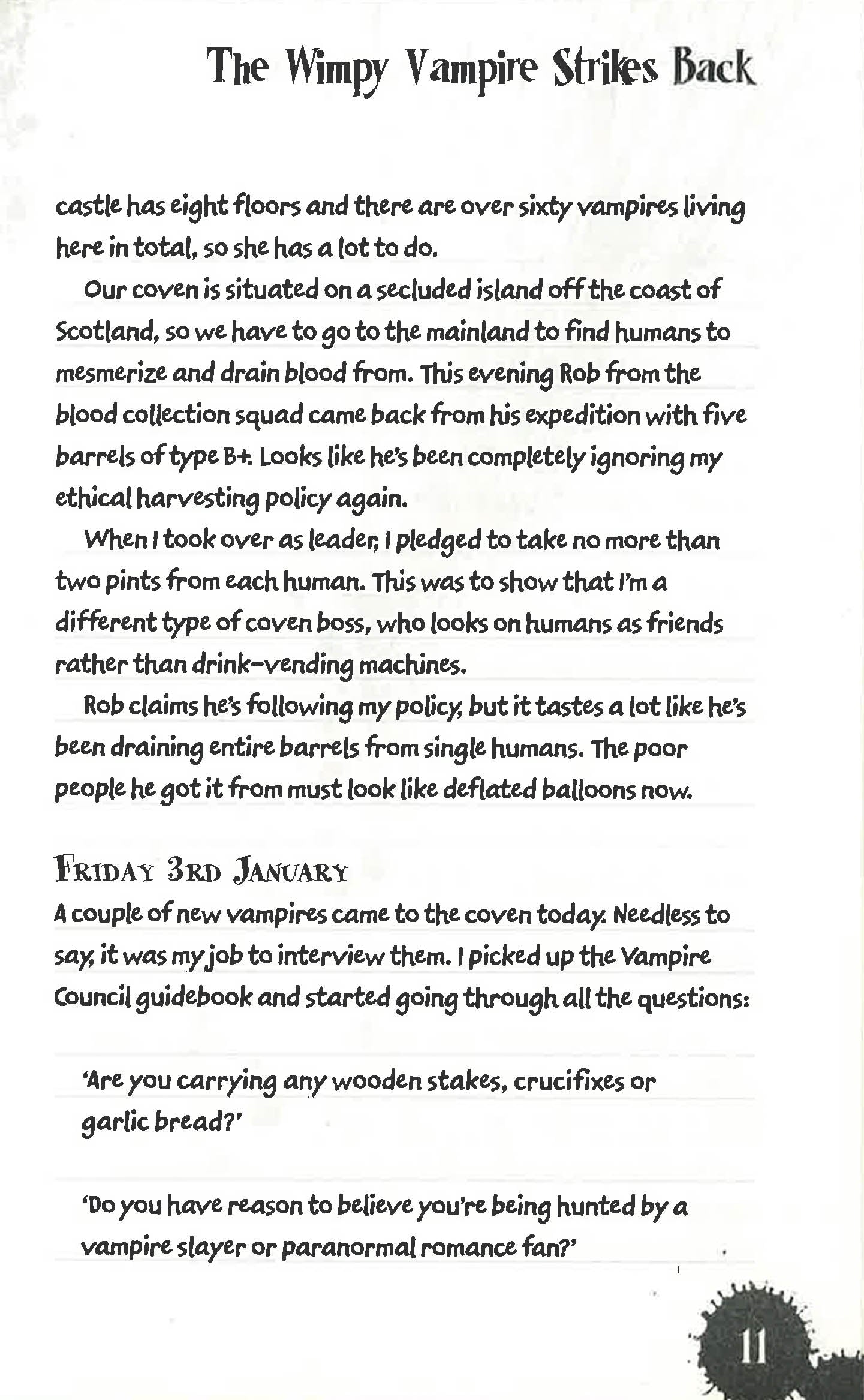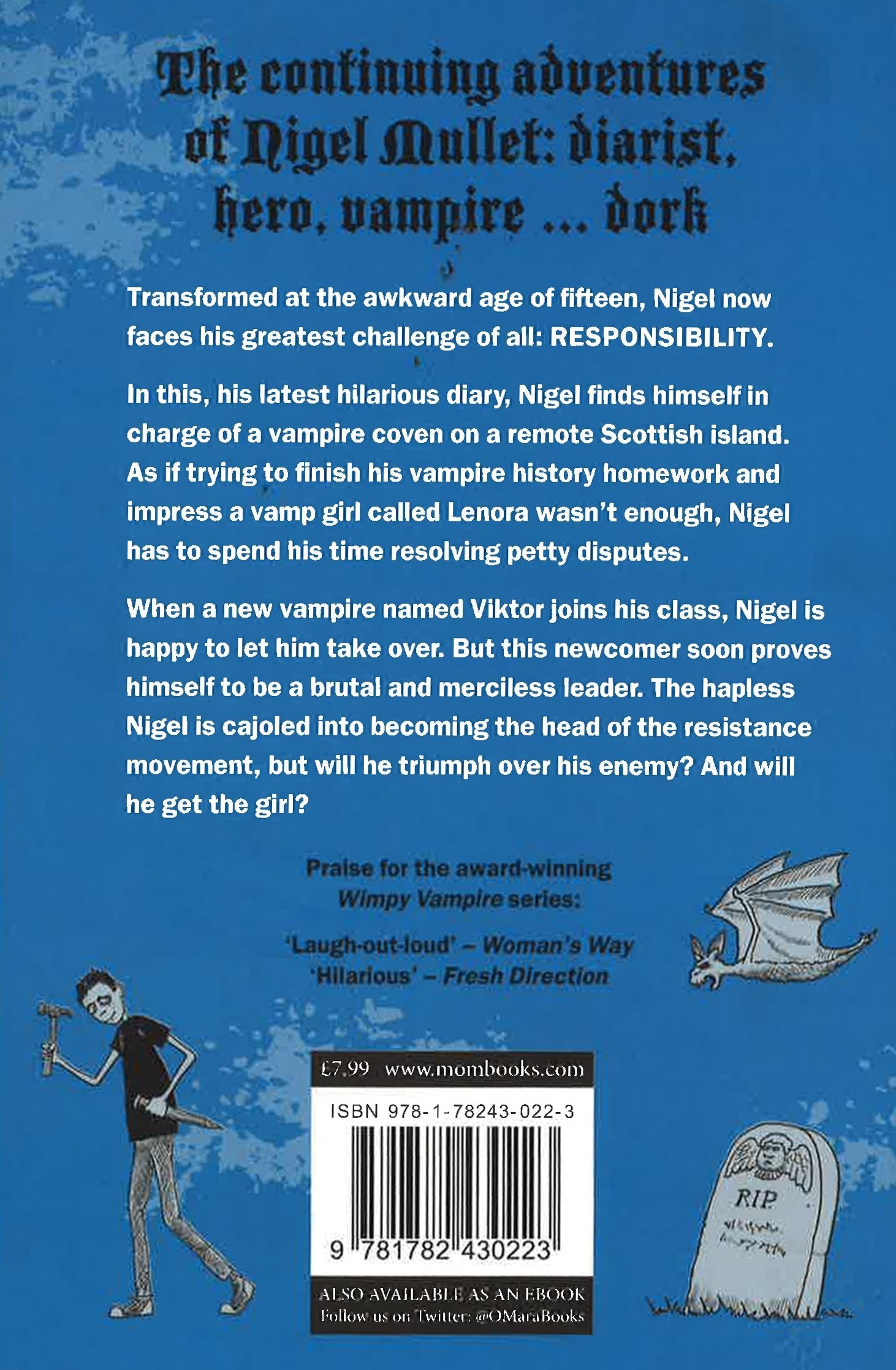 Nigel Mullet is just your average fifteen-year-old immortal vampire: he likes to play video games, laze about, awkwardly pursue girls, write in his diary and occasionally save the day. But now Nigel finds himself in charge of the vampire coven on the remote island of Hirta, a responsibility he's not particularly enjoying. He's sick of resolving petty disputes between vampires when he could be using his position to get to know the hot vamp girls who have been increasingly showing interest in him, especially the sultry Lenora. Power does have some other positives, though, such as having the biggest room in Hirta Castle and getting away without doing vampire history homework. When Nigel allows a recent coven recruit named Viktor to take over his role, the newcomer proves himself to be a brutal and merciless leader. The hapless Nigel is cajoled into becoming the leader of the resistance movement, but can he defeat the tyrant? Can he prove himself a leader of men (even though he's really not that bothered)? And will he get the girl?