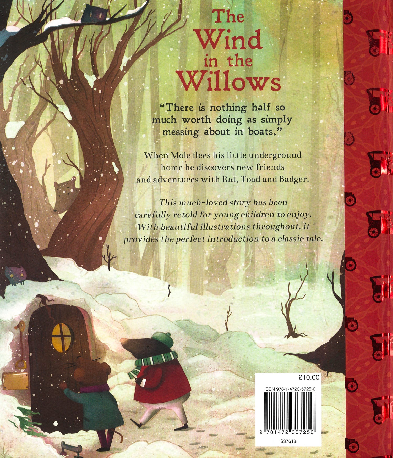 For more than a century, The Wind in the Willows and its endearing protagonists--Mole, Mr. Toad, Badger, and Ratty--have enchanted children of all ages. Whether the four friends are setting forth on an exciting adventure, engaging in a comic caper, or simply relaxing by the River Thames, their stories are among the most charming in all English literature.