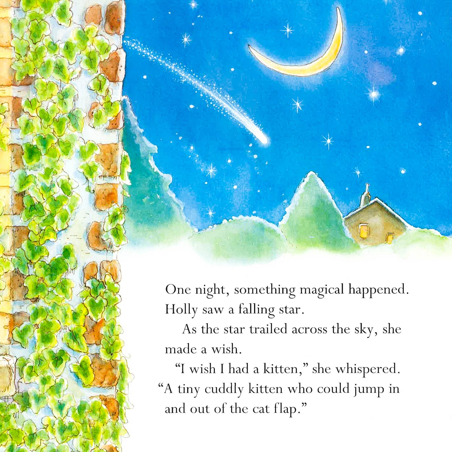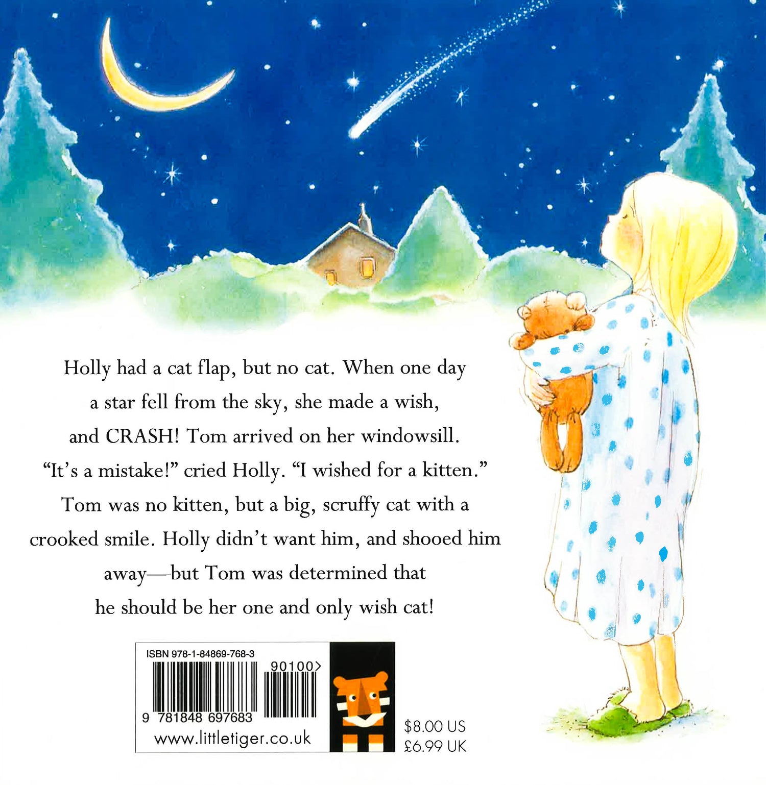 Holly had a cat flap, but no cat. When one day a star fell from the sky, she made a wish, and crash! Tom arrived on her windowsill. "It's a mistake!" cried Holly. "I wished for a kitten." Tom was no kitten, but a big, scruffy cat with a crooked smile.