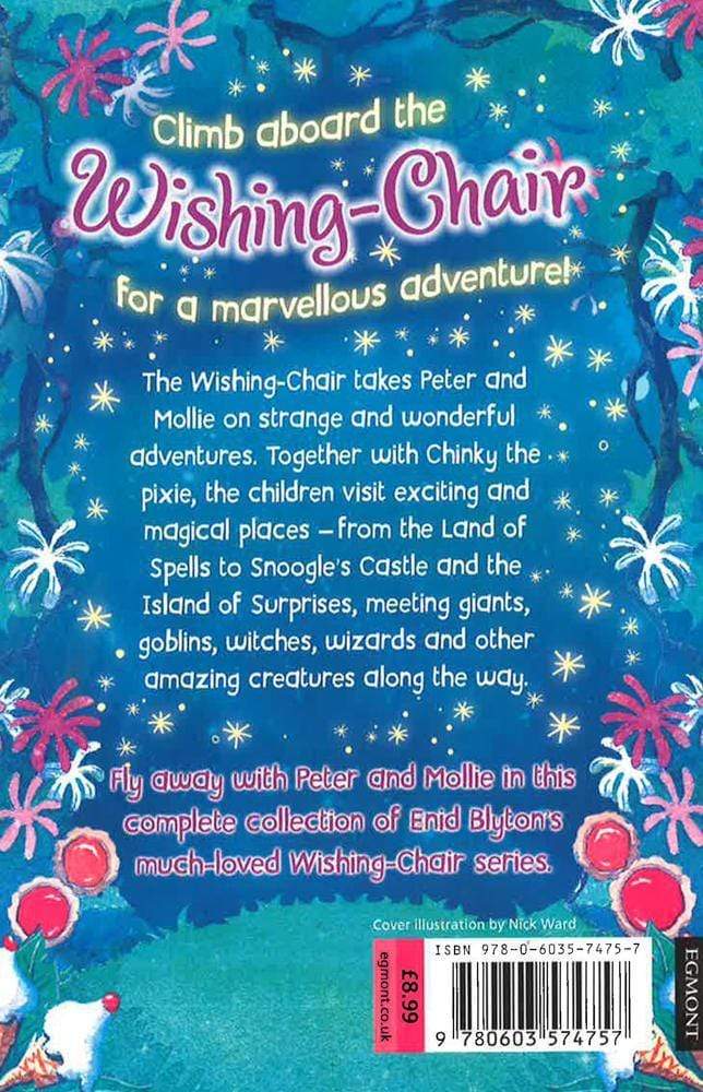 Whizz off on three magical adventures in one bumper illustrated book from the world's best-loved children's author, Enid Blyton. The Adventures of the Wishing-Chair: When Mollie and Peter go to buy their mother a birthday present, they discover the most extraordinary thing: a chair that can fly and grant wishes! The Wishing-Chair takes them on some marvellous adventures - to a castle where they narrowly escape from a giant and rescue Chinky the pixie, to the Land of Dreams, and to a disappearing island! The Wishing-Chair Again: Mollie and Peter are home for the holidays and they long to see their friend Chinky and their magic Wishing-Chair. Together they have wonderful adventures, but what happens when the Wishing-Chair is stolen and then gets its wings cut off by the naughty Slipperies? More Wishing-Chair Stories: Mollie and Peter and Chinky the pixie have more amazing adventures on their Wishing-Chair. They find gold at the end of the rainbow, they meet brownies and they visit the Land of Wishes. Best of all they get to help Santa Claus deliver presents for Christmas! Short chapters and illustrations make The Wishing Chair Adventures perfect bedtime reading for children aged five and up. For grandparents and parents it is a chance to introduce Blyton to the next generation. Also look out for the New Adventures of the Wishing Chair, The Island of Surprises The Land of Mythical Creatures Winter Wonderland Giantland Spellworld Enid Blyton is arguably the most famous children's author of all time, thanks to series such as The Wishing-Chair, The Faraway Tree-, The Mysteries, The Famous Five and The Secret Seven. Her fantasy books are among her most popular creations and they promise to enchant boys and girls for generations to come.