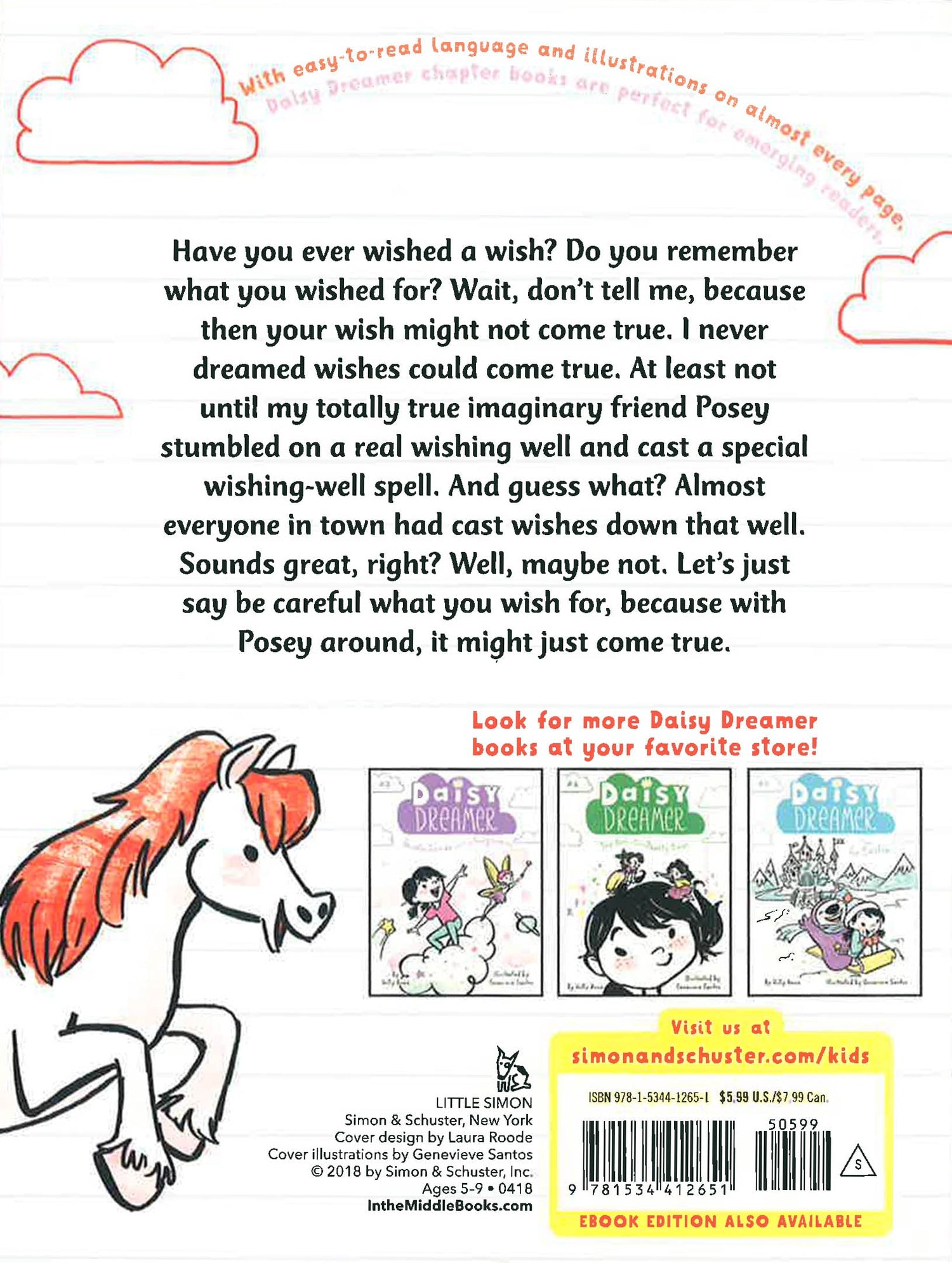 Remember me? Daisy Dreamer? Of course you do, silly! Well, Posey my totally true imaginary friend just cast a special wishing well spell. And you won't believe what came true!Have you ever wished a wish? Do you remember what you wished for? Wait, don't tell me, because then your wish might not come true. My made a wish once. They threw a coin down a well, but it never came true. At least not until my totally true imaginary friend Posey came along with a special wishing-well spell. And guess what? It wasn't only their wish that came true. Almost everyone in town had cast wishes down that well. Sounds great, right? Well, maybe not. Let's just say be careful what you wish for because with Posey around, it might just come true. With easy-to-read language and illustrations on almost every page, the Daisy Dreamer chapter books are perfect for emerging readers.