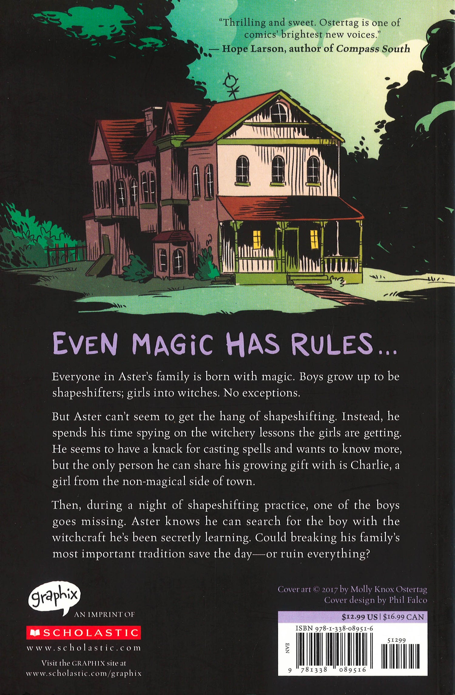 In thirteen-year-old Aster's family, all the girls are raised to be witches, while boys grow up to be shapeshifters. Anyone who dares cross those lines is exiled. Unfortunately for Aster, he still hasn't shifted . . . and he's still fascinated by witchery, no matter how forbidden it might be.When a mysterious danger threatens the other boys, Aster knows he can help -- as a witch. It will take the encouragement of a new friend, the non-magical and non-conforming Charlie, to convince Aster to try practicing his skills. And it will require even more courage to save his family . . . and be truly himself.