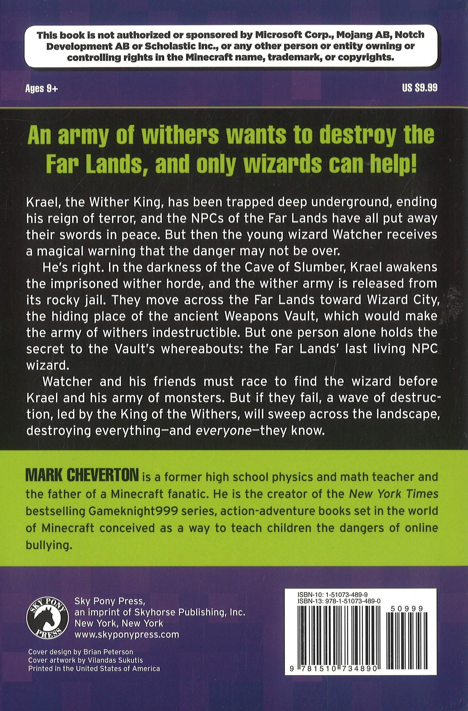 New York Times Bestselling Author! The world of Minecraft comes to life in this thrilling original adventure!Krael, the Wither King, has been trapped deep underground, ending his reign of terror, and all the NPCs of the Far Lands have all put away their swords in peace except Watcher; the young archer still suspects Krael has bigger plans.He's right. In the darkness of the Cave of Slumber, Krael awakens the imprisoned wither horde, and with the help of creepers and endermen, the wither army is released from their rocky jail. They spread across the Far Lands, searching for the ancient Vault of Weapons which will make the army of withers indestructible. But one man alone holds the secret to the Vault's whereabouts: the Far Land's last living NPC wizard.Watcher and his friends must race to find the wizard before Krael and his army of monsters. But if they fail, a wave of destruction, led by the King of the Withers, will sweep across the landscape, destroying everything-and everyone-they know.