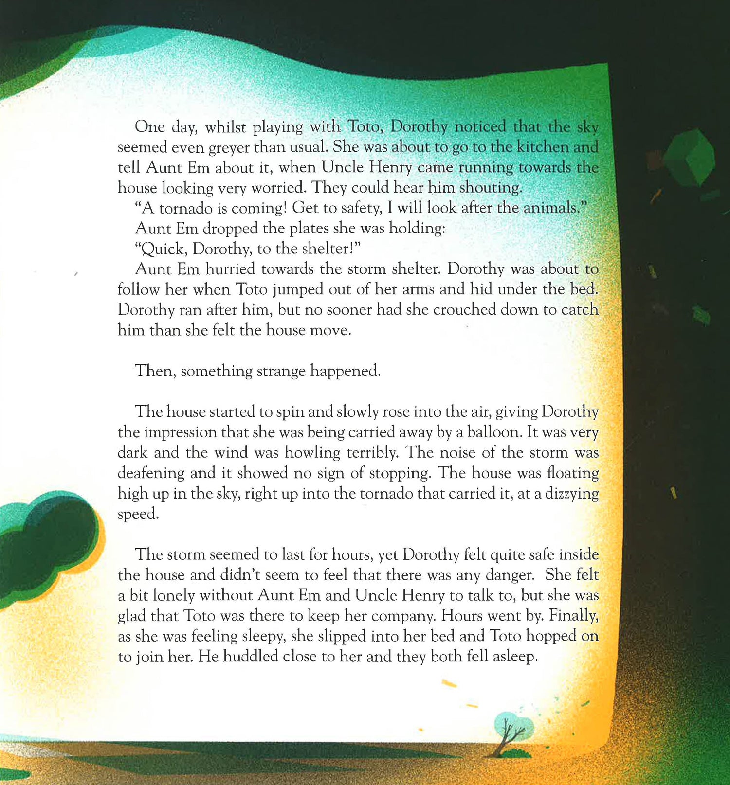 A stylish new edition of the classic children's story is brought to live by incredible new illustrations which introduce you to familiar and lovable characters such as Lion and Tin Man as you join Dorothy and Toto on their journey to visit The Wizard of Oz. Dorothy lives on a farm in Kansas with her aunt and uncle and her little dog Toto. Suddenly, a violent storm transports Dorothy to the land of Oz. Her only means of getting home is to follow the famous yellow brick road to meet with the famous wizard. Along the way, she makes new friends and encounters both good fortune and danger. The original book was first published in 1900, and this new edition has a text specially adapted for younger readers which captures the excitement and drama in way that is accessible, easy to follow. The perfect introduction to the classic story for a new generation.