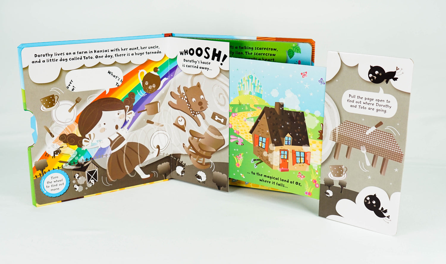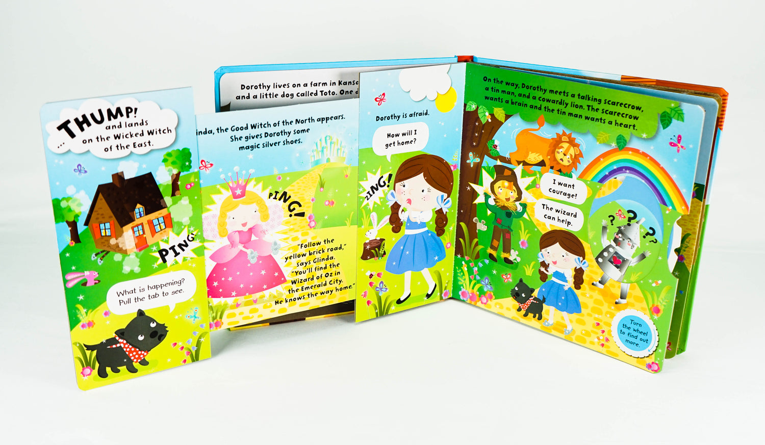Follow the yellow brick road! Find out what happens to Dorothy, Toto, and their friends in this retelling of the classic fairy tale. Inside you'll find surprise reveals, fun flaps, and picture wheels that bring the story to life. This fun, interactive storybook is the perfect introduction to the much-loved children's classic.