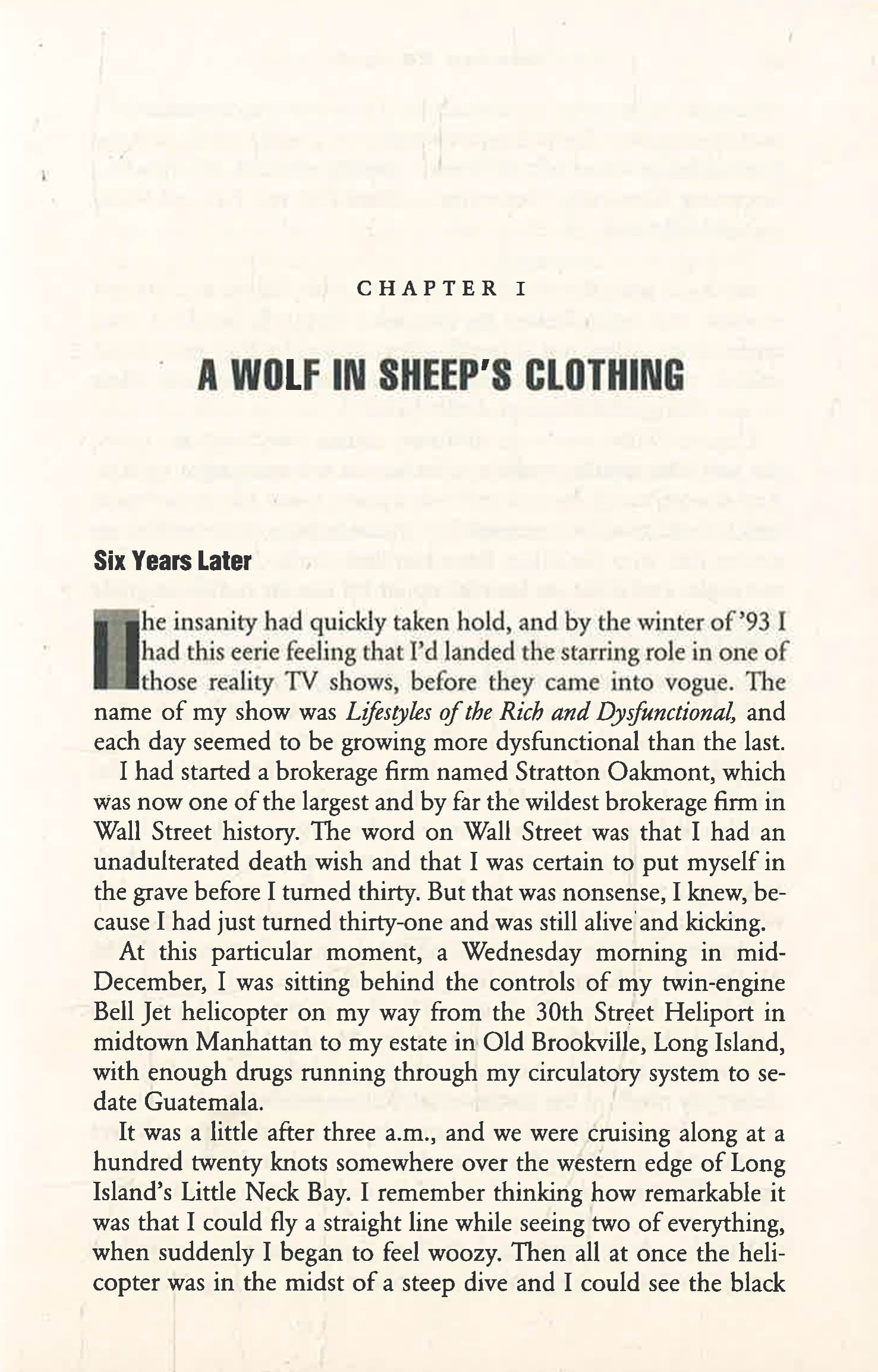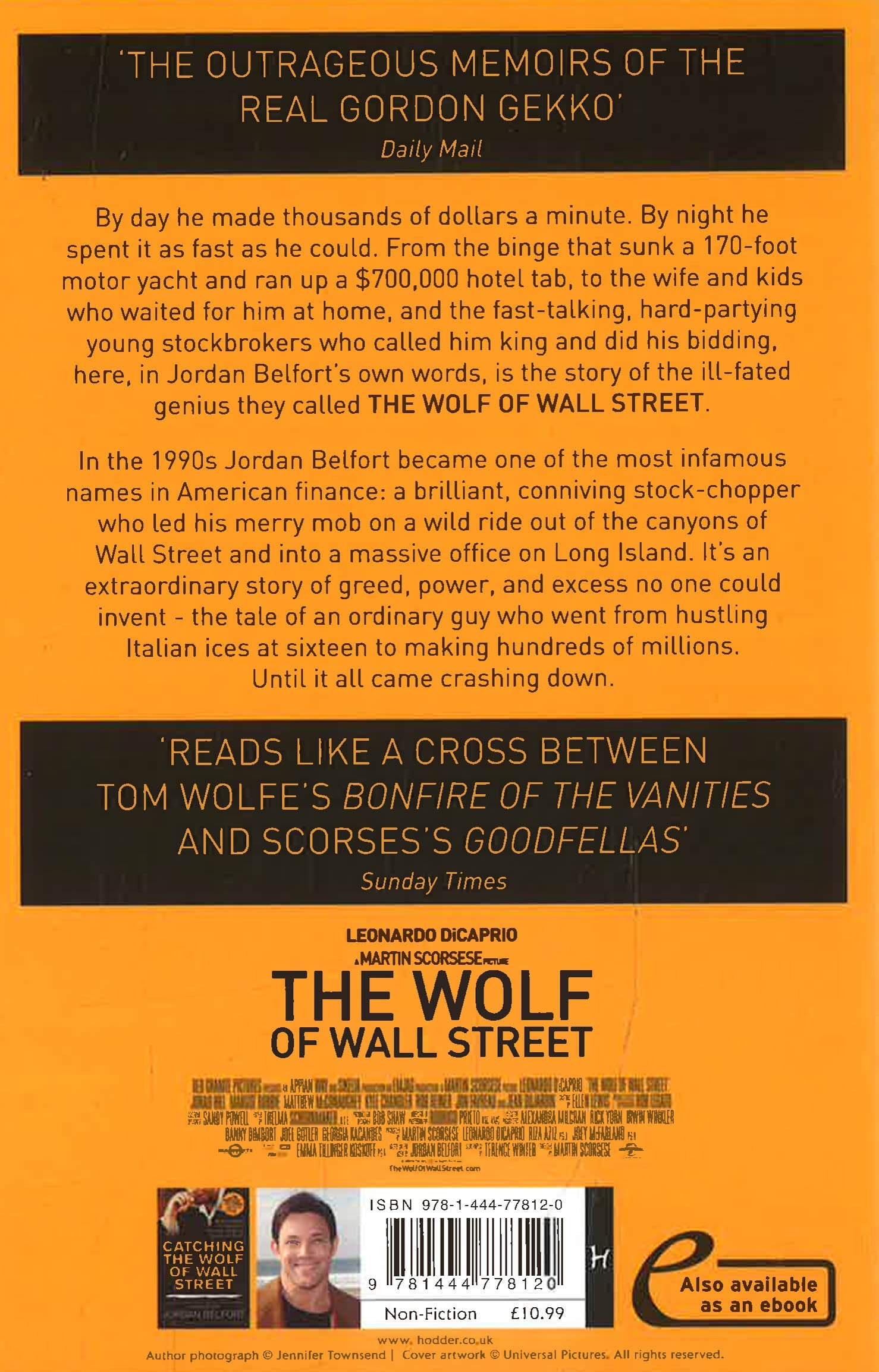 NOW AN AWARD-WINNING MOTION PICTURE DIRECTED BY MARTIN SCORSESE, STARRING LEONARDO DICAPRIO, MATTHEW MCCONAUGHEY AND JONAH HILL. 'What separates Jordan's story from others like it, is the brutal honesty.' - Leonardo DiCaprio By day he made thousands of dollars a minute. By night he spent it as fast as he could, on drugs, sex, and international globe-trotting. From the binge that sunk a 170-foot motor yacht, crashed a Gulfstream jet, and ran up a $700,000 hotel tab, to the wife and kids who waited for him for at home, and the fast-talking, hard-partying young stockbrokers who called him king and did his bidding, here, in his own inimitable words, is the story of the ill-fated genius they called... THE WOLF OF WALL STREET In the 1990s Jordan Belfort, former kingpin of the notorious investment firm Stratton Oakmont, became one of the most infamous names in American finance: a brilliant, conniving stock-chopper who led his merry mob on a wild ride out of the canyons of Wall Street and into a massive office on Long Island. In this astounding and hilarious tell-all autobiography, Belfort narrates a story of greed, power, and excess no one could invent - the story of an ordinary guy who went from hustling Italian ices at sixteen to making hundreds of millions. Until it all came crashing down.