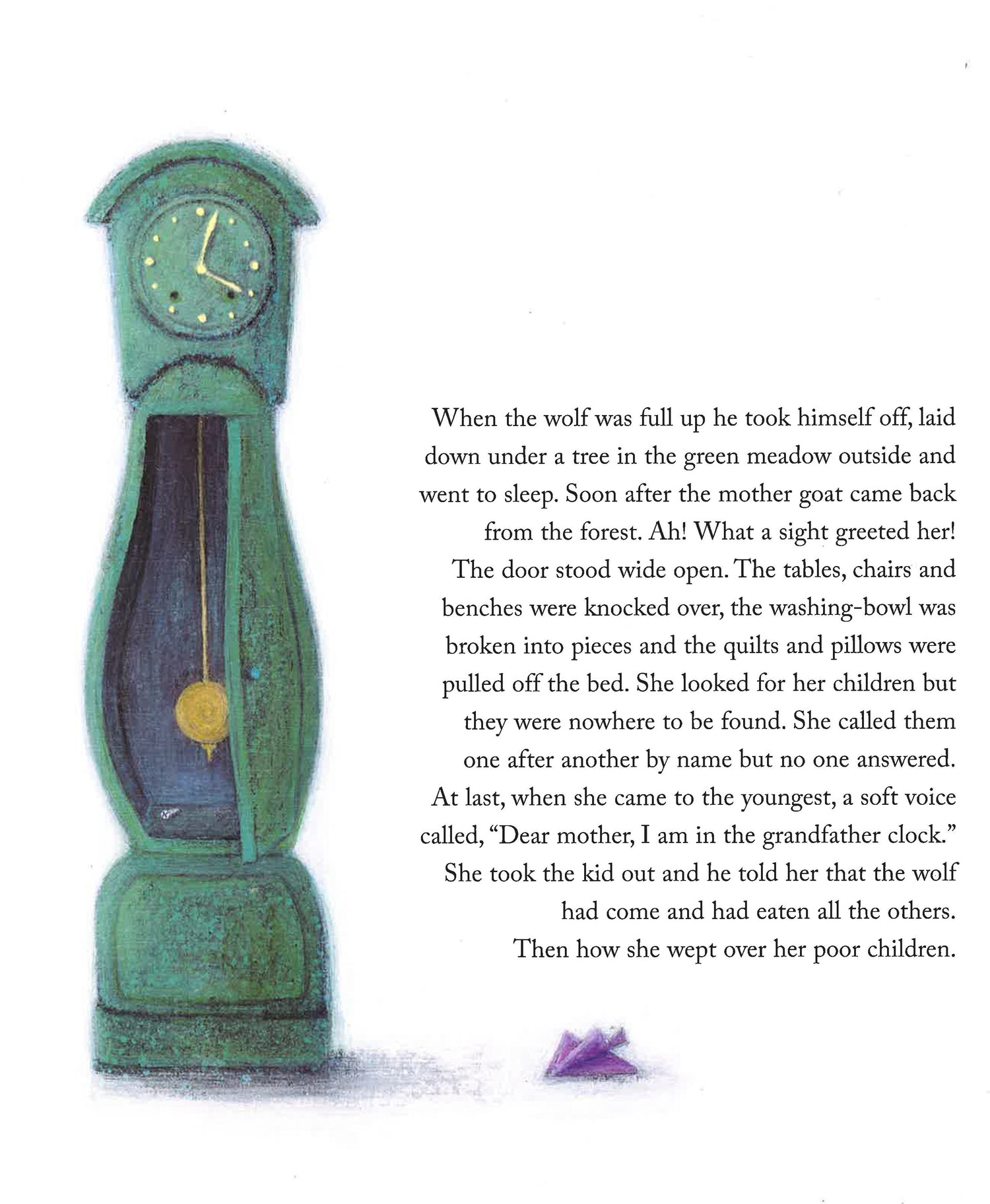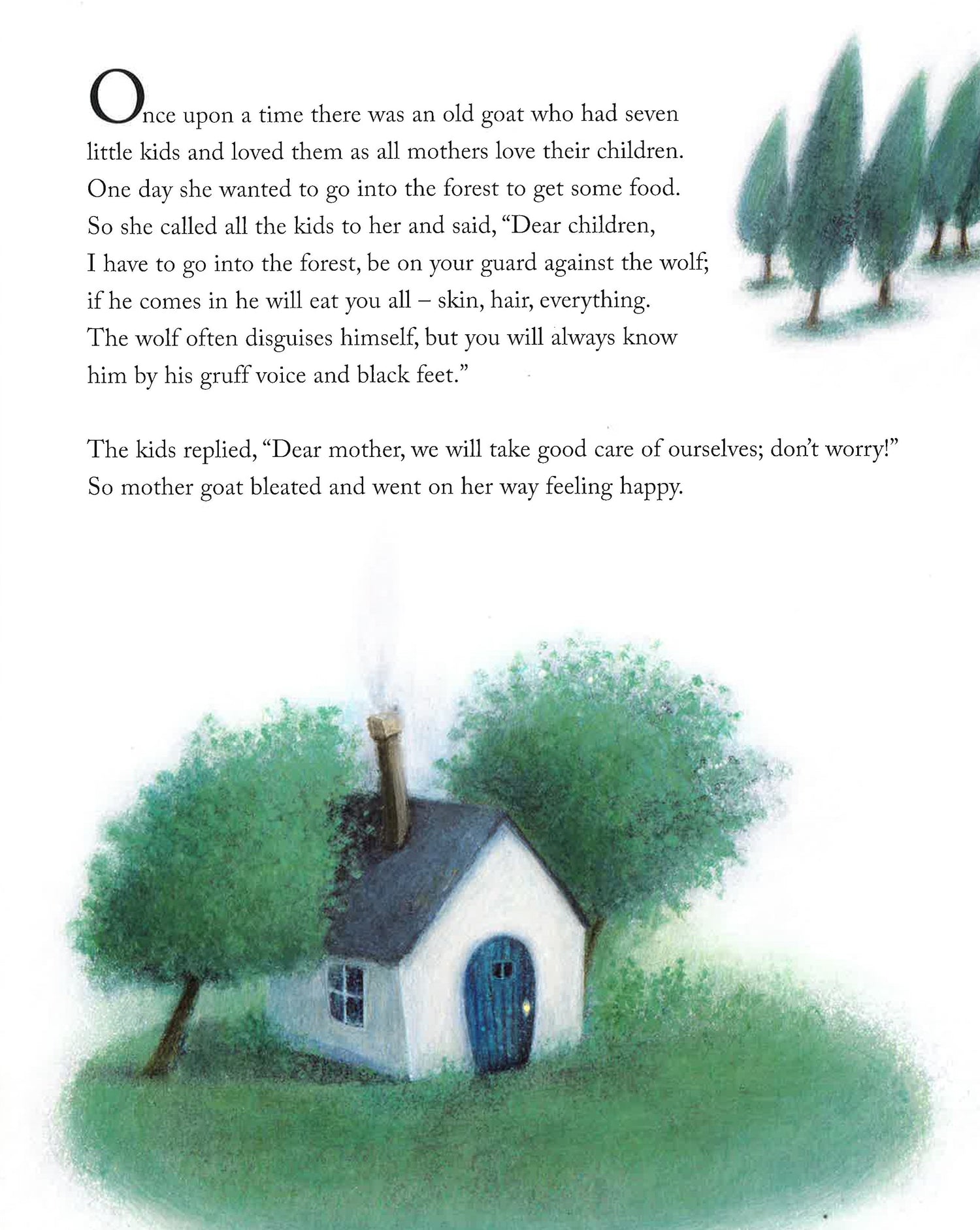 A striking new interpretation of a classic fable In this classic Brothers Grimm tale, seven young goats match wits with a vicious wolf. He tries to trick them while their mother is away. Will he succeed? ..