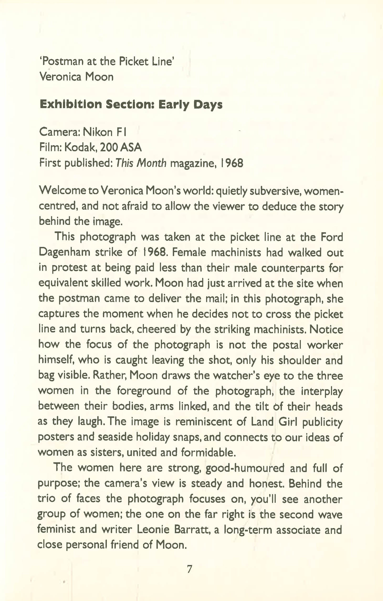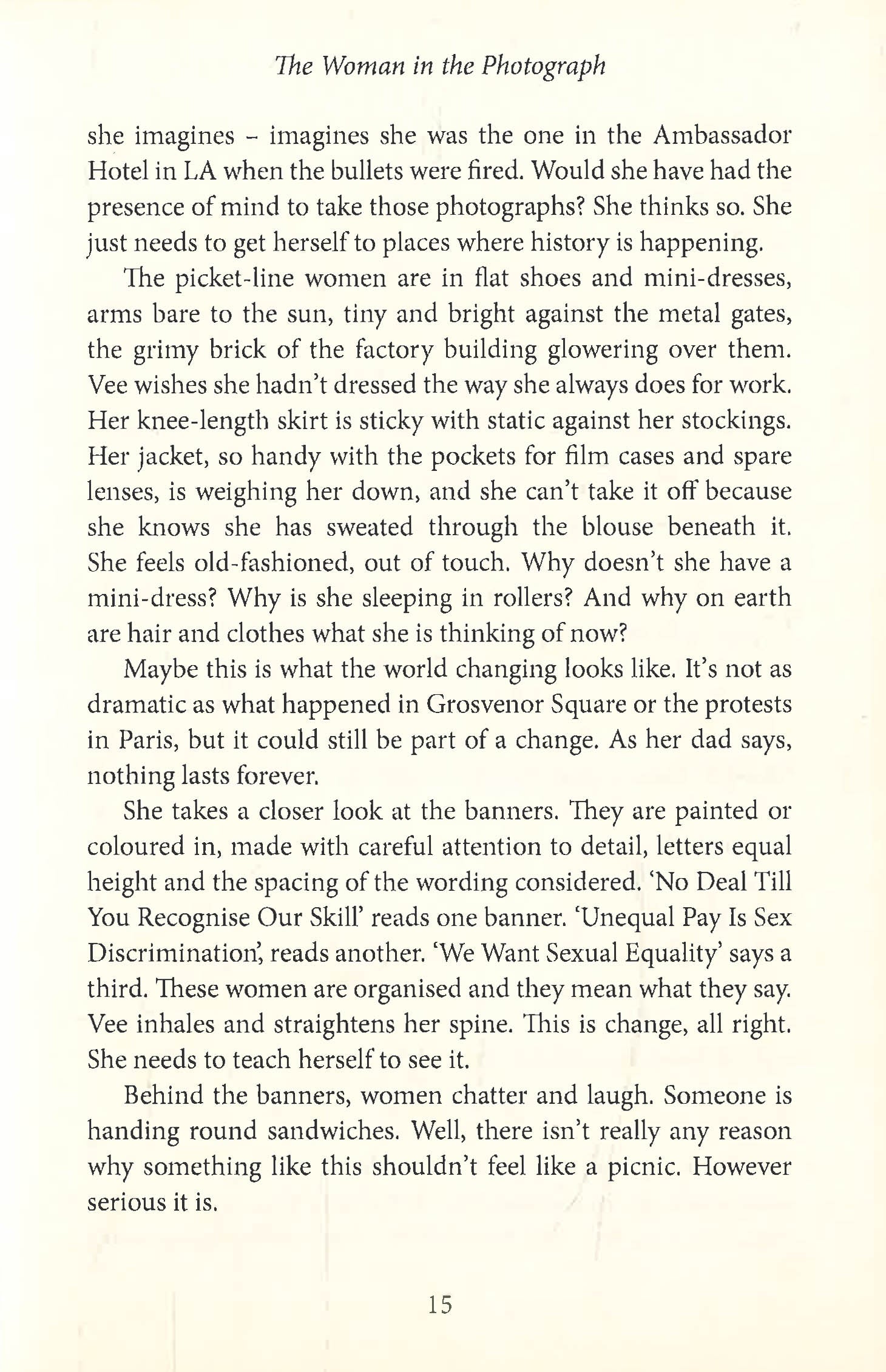 1968. Veronica Moon, a junior photographer on a local paper in an Essex town, is frustrated. She never gets good assignments, and no one takes her seriously. And then she visits the picket line at Dagenham Ford Factory.