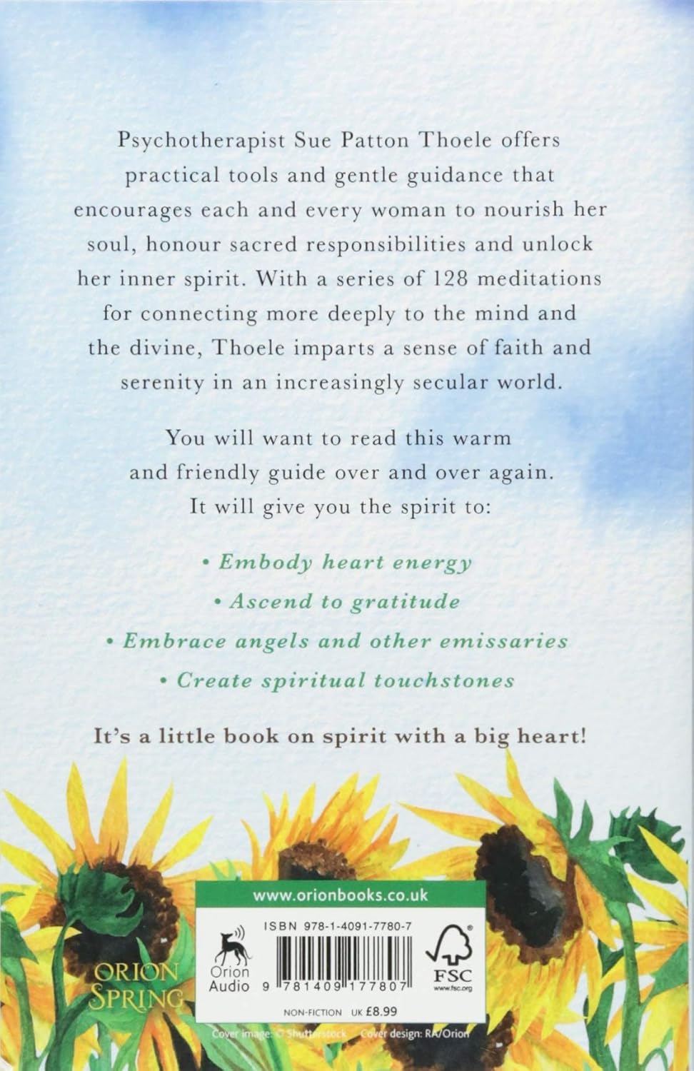 A series of 128 meditations that allow women to connect more deeply to themselves and the divine in a way that comfortably fits with whirlwind 21st century lifestyles. A book that imparts a sense of safety and serenity in a world that seems increasingly scary and dangerous. Each of the ten sections have ten to fifteen meditations. Those ten points of focus are: re-greening arid places; embodying heart energy; nourishing our souls; intertwining soul-strands; honouring sacred rights and responsibilities; creating spiritual touchstones; awakening to wisdom; enrolling in saint's school; ascending to gratitude; embracing angels and other emissaries. This is an inspirational pick-me-up for women, meant to be read over and over again throughout the course of a year.