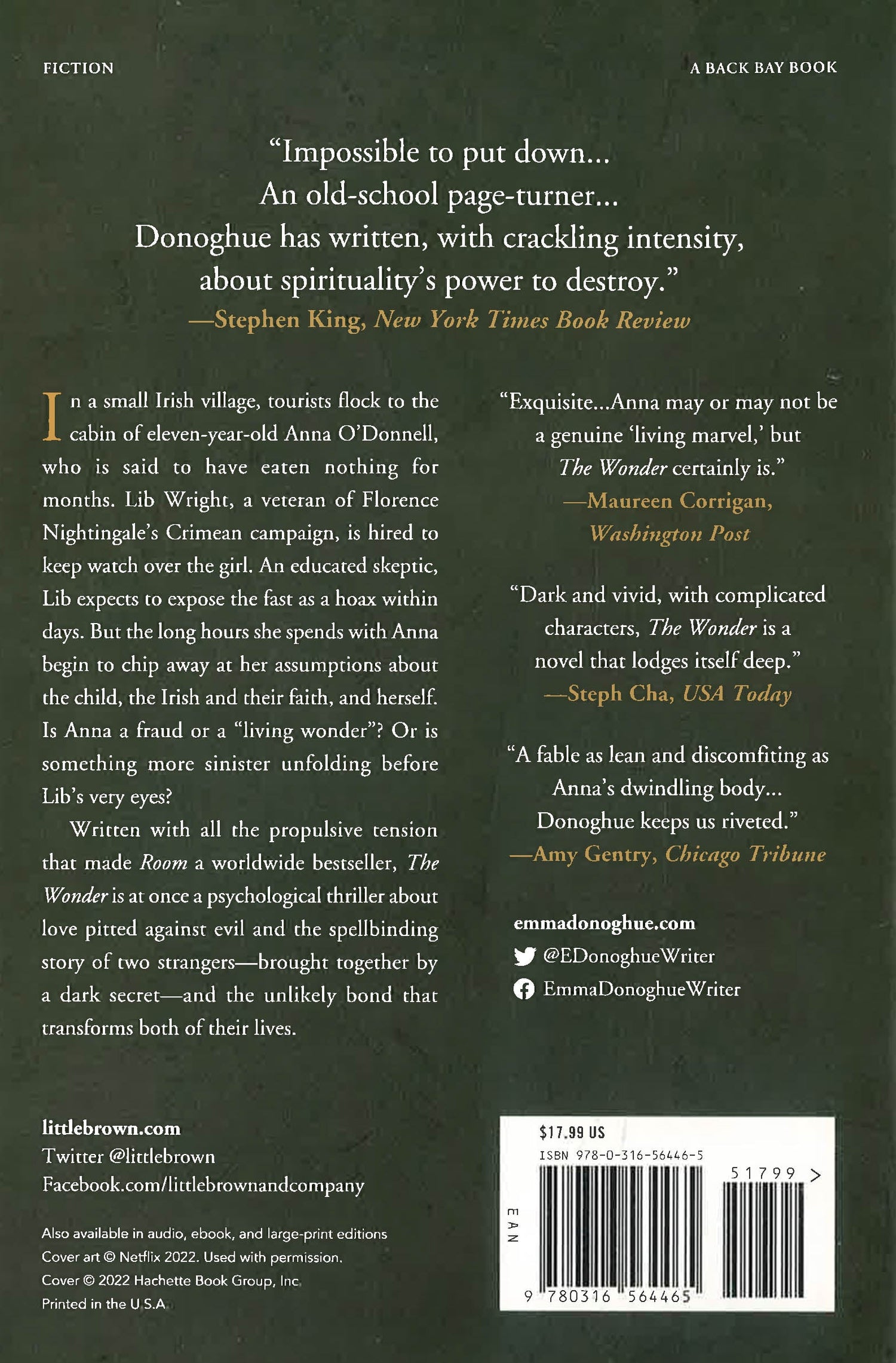 Written with all the propulsive tension that made Room a huge bestseller, The Wonder works beautifully on many levels -- a tale of two strangers who transform each other's lives, a powerful psychological thriller, and a story of love pitted against evil.