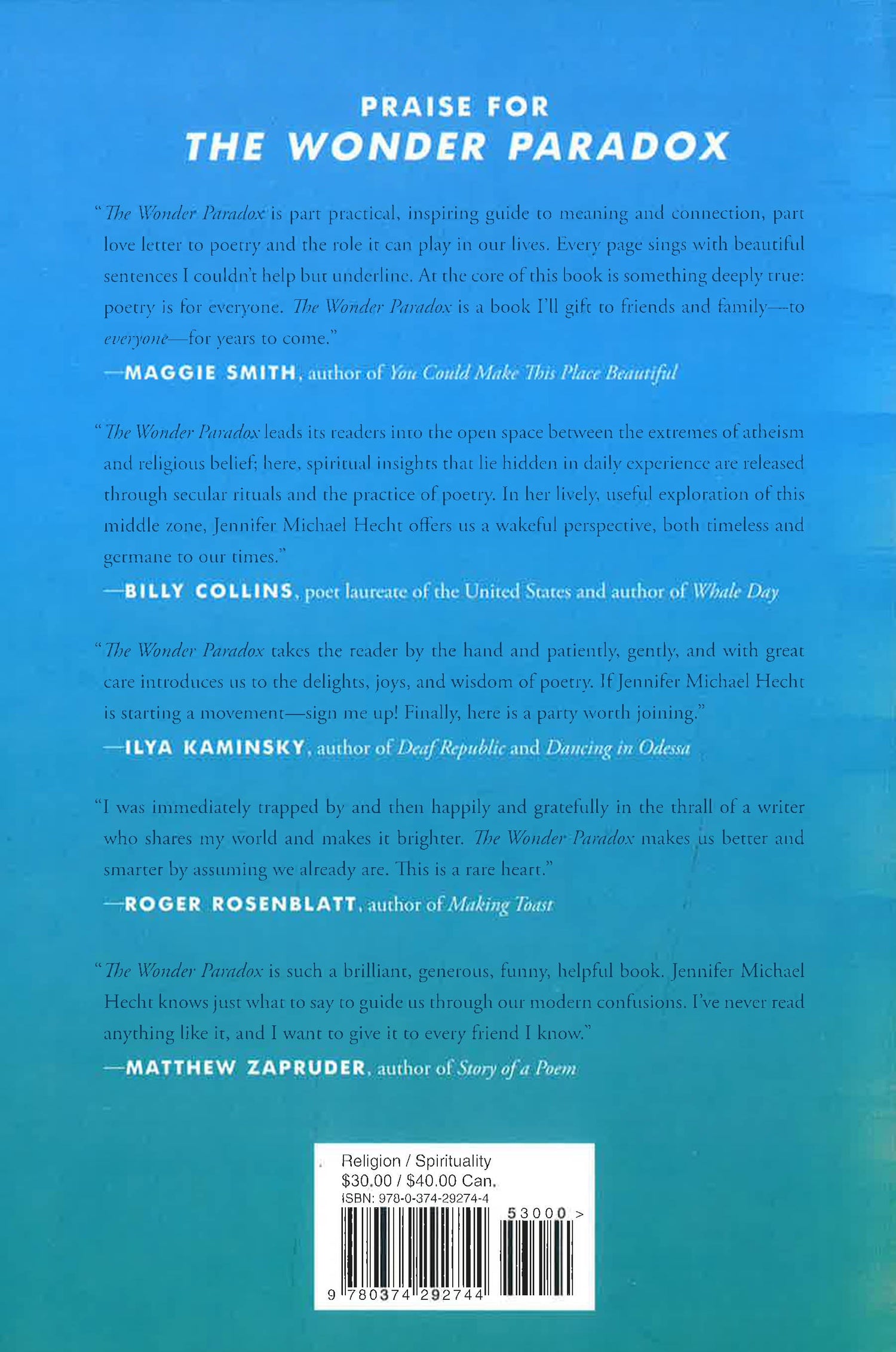 So how then to celebrate milestones? Find rules to guide us? Figure out which texts can focus our attention but still offer space for inquiry, communion, and the chance to dwell for a dazzling instant in what can't be said? Where, really, are truth and beauty? The answer, says The Wonder Paradox, is in poetry.