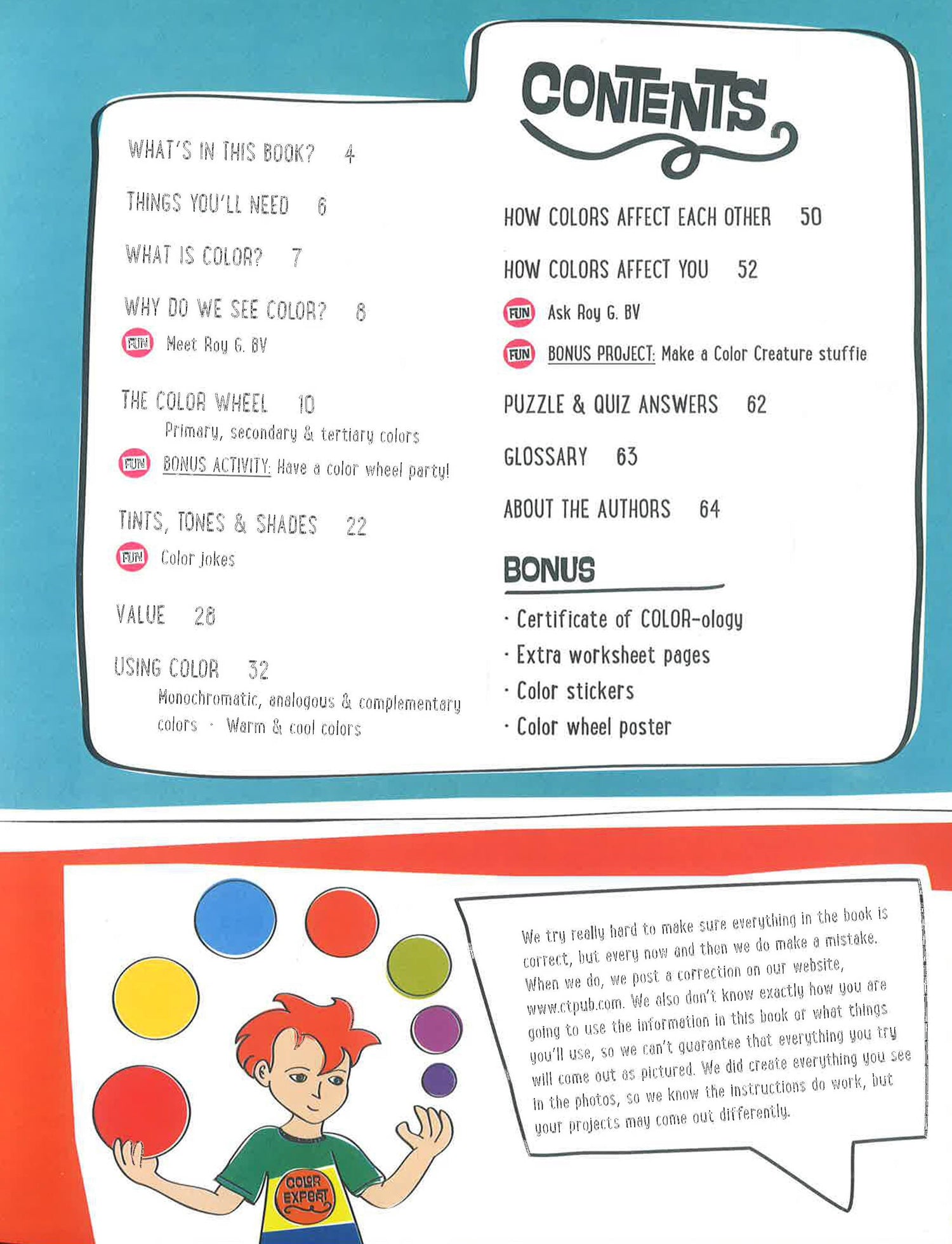 The Wonderful Colorful Wonder Wheel of Color teaches basic color theory by engaging kids with more than 20 activities, worksheets, stickers, quizzes, and games. Kids will learn how to create, mix, and match color to use in crafting, decorating, and more. They'll learn how to use the color wheel and apply their knowledge to create new color schemes. The book also includes a 2-sided color wheel pullout poster, Certificate of COLOR-ology, and bonus sewing project. For kids aged 8 and up.