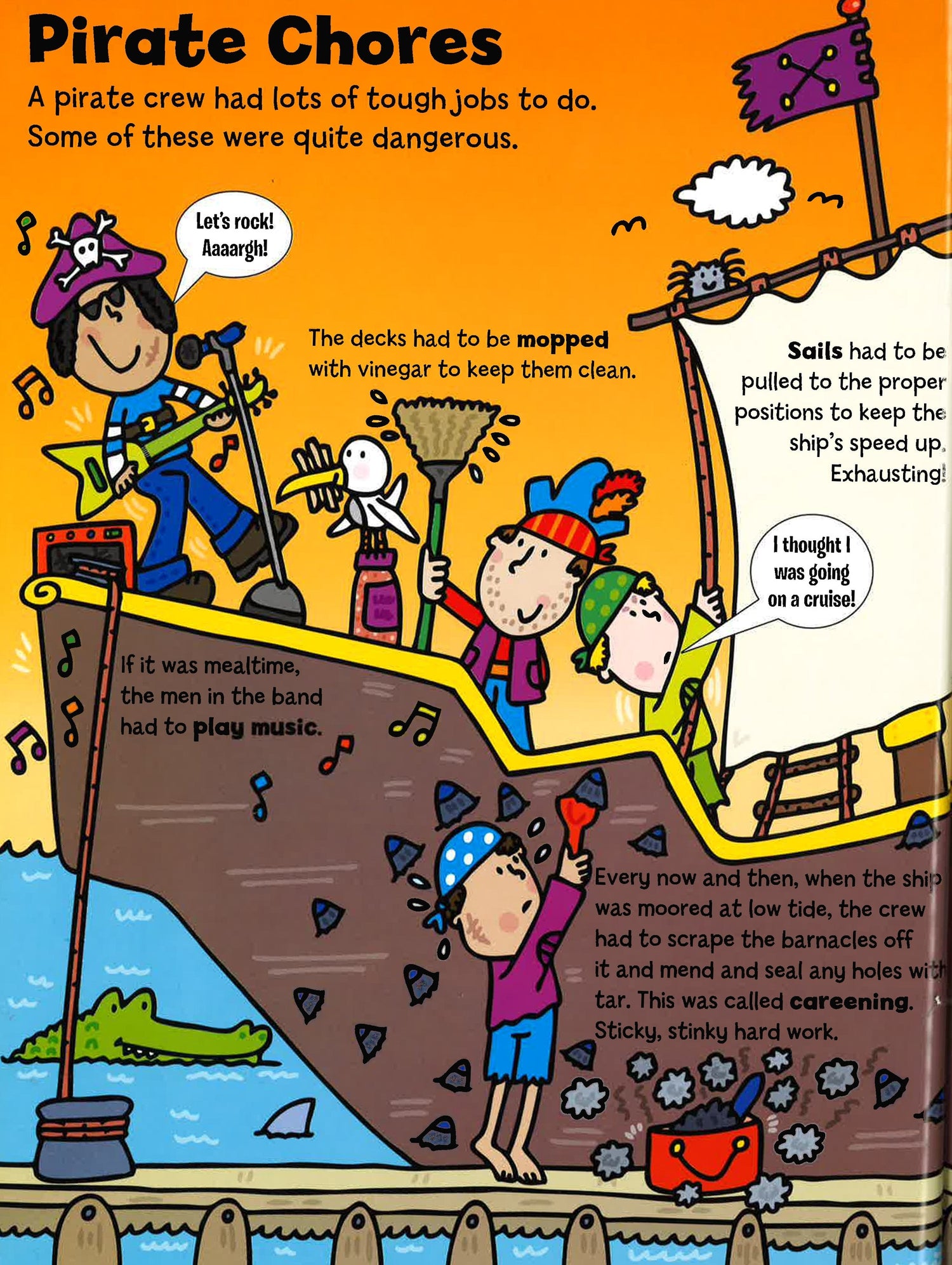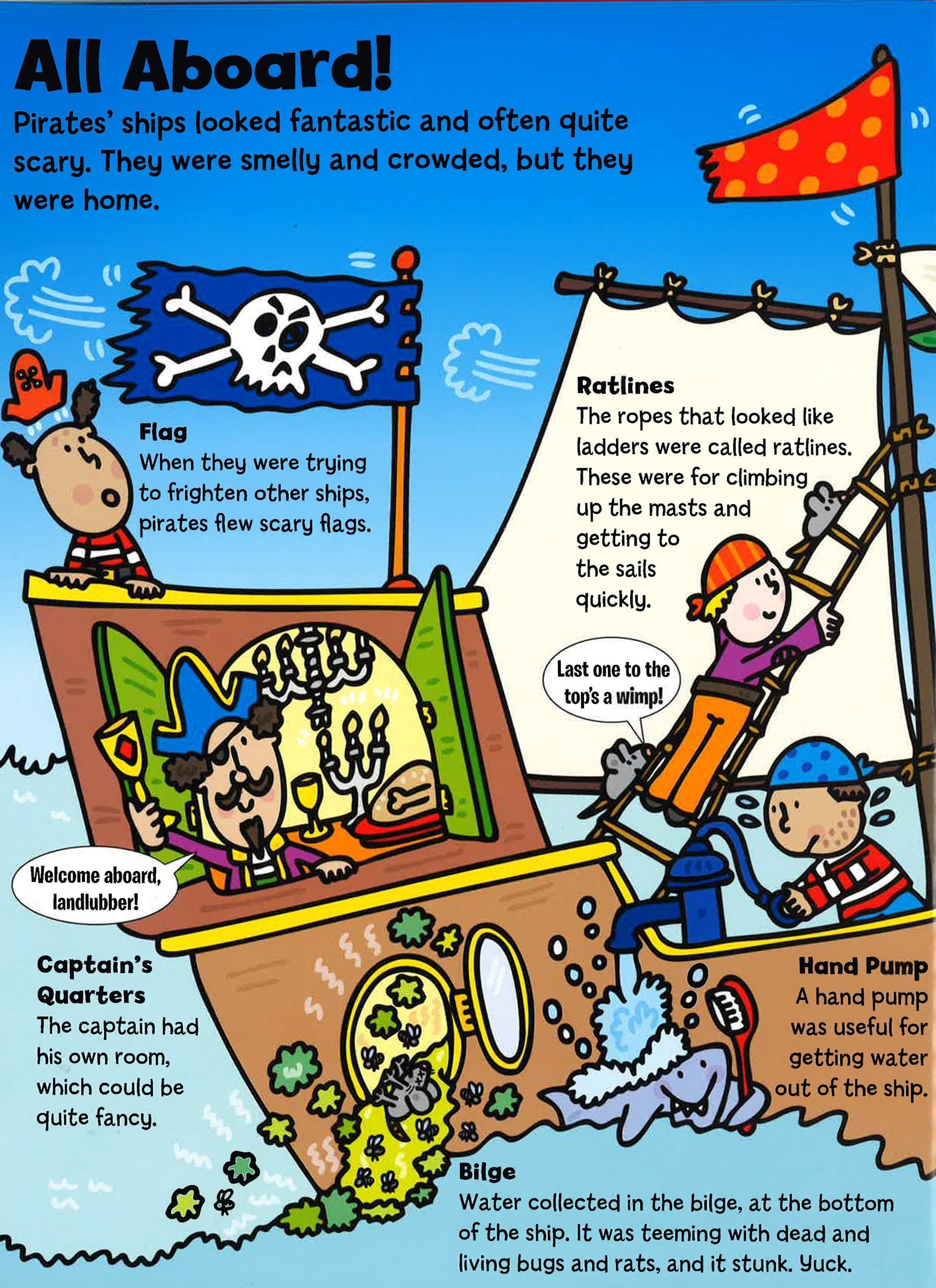 Take a look inside a captain's quarters, meet the dastardly crew and find out why they all loved to eat turtles in this warts-and-all version of pirate life according to Simon Abbott.Packed with fun facts and real-life historical figures, this lively book comes with its own list of pirate words and detailed spreads showing the ins and outs of life on the high seas.