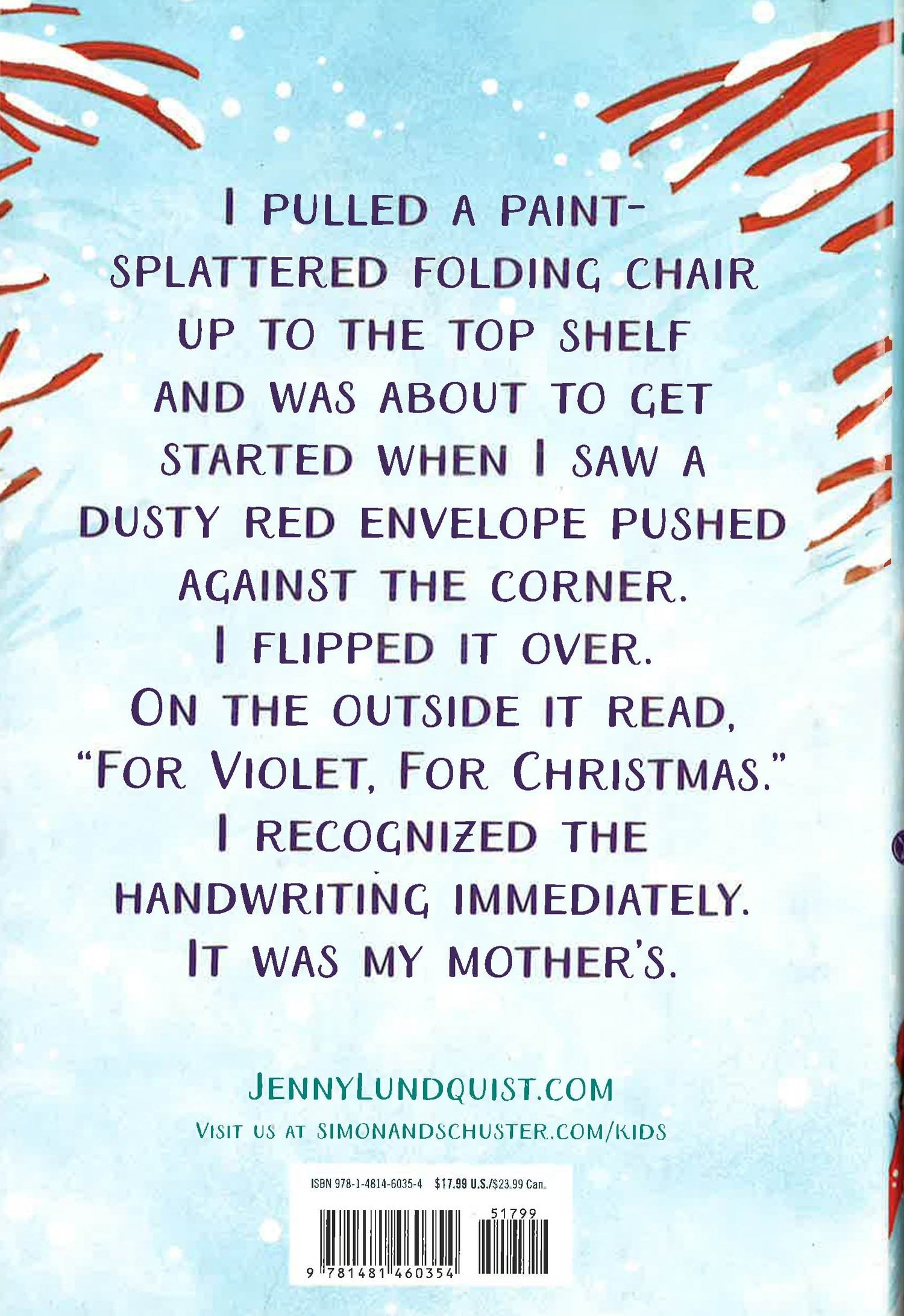 Violet Barnaby is a having a blue Christmas. She’s still grieving the loss of her mother, and to make things worse, her dad has just married Melanie Harmer, a.k.a. the meanest teacher at Dandelion Hollow Middle School. But on the day Violet and her dad are packing up and moving into the new house they’ll share with Melanie and Melanie’s two children, Violet finds a letter her mother wrote to her before she died, asking Violet to enjoy Christmas, along with a Christmas Wish List - things her mom wants her to do during the holiday season. On the list are exactly the kinds of things Violet doesn’t want to do this year, like Be Someone’s Secret Santa; Give Someone the Gift of Your Time: Volunteer; and Bake Christmas Cookies.Violet shows the letter to her friend Izzy’s Aunt Mildred, who calls a meeting of the Charm Girls, a club Izzy and Violet belong to along with their friends, Daisy and Sophia. Aunt Mildred decides she will give them each a charm to put on their bracelet if they do all of the tasks on the Christmas Wish List, which Violet is not too happy about. She’d rather forget about the list completely, but feels compelled to honor her mother’s wishes.And when Izzy’s crush confides a big secret to Violet, Violet feels like she is stuck between her best friend and the boy who she just might have a crush on, too…