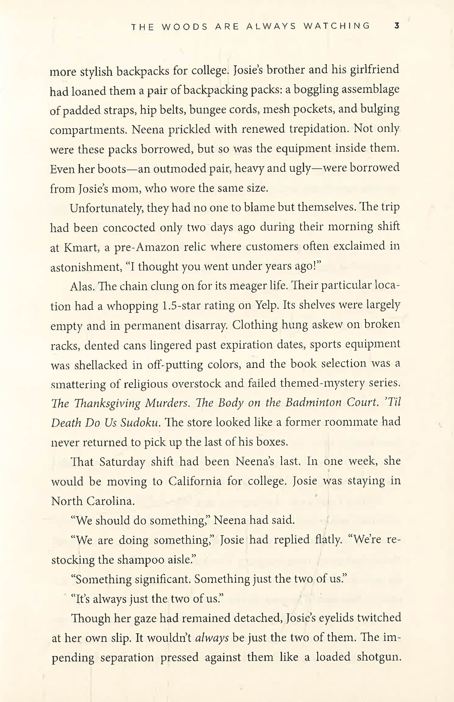 The Woods are Always Watching is an edge-of-your-seat, nerve-wrangling thriller. Full of breathtaking action and twists you'll never see coming, Stephanie Perkins has created a masterpiece of the horror genre.