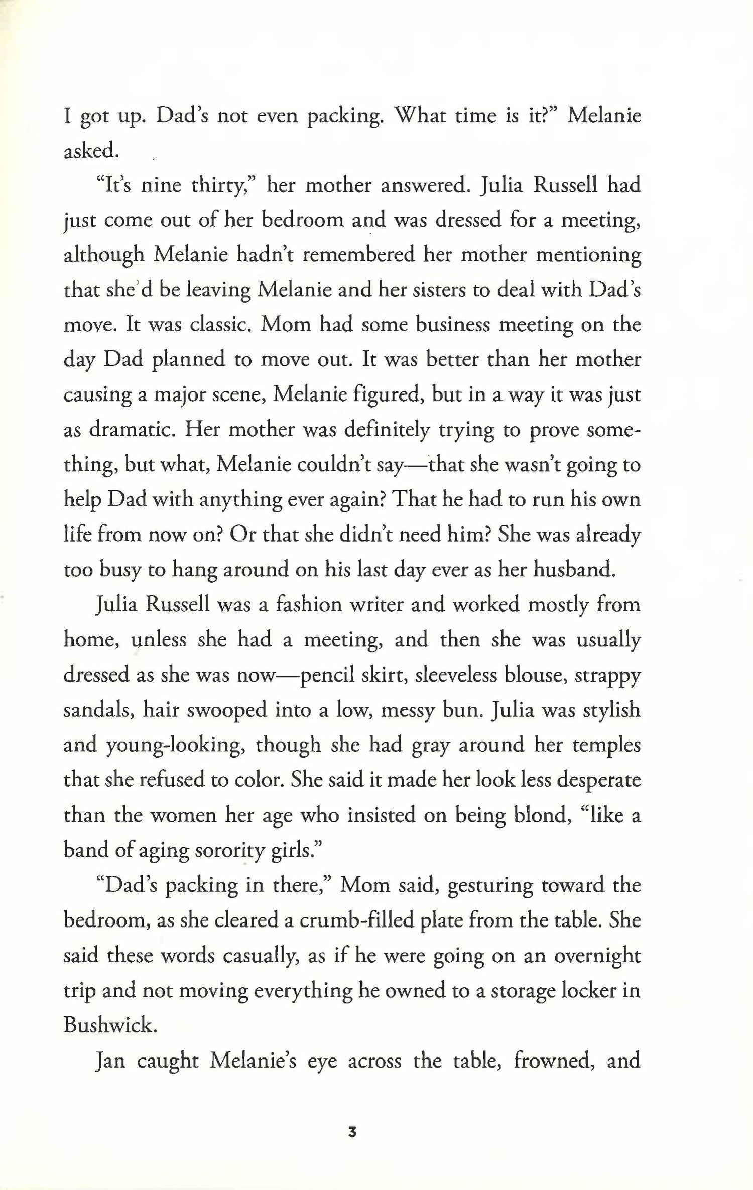 At once honest and touching, Claire Needell's debut novel is a moving look at date rape and its aftermath, at the love and conflicts among sisters and friends, and how these relationships can hold us together - and tear us apart.The gap between the Russell sisters - Jan, Erika, and Melanie - widens as each day passes. Then, at a party full of blurred lines and blurred memories, everything changes. Starting that night, where there should be words, there is only angry, scared silence.And in the aftermath, Jan, Erika, and Melanie will have to work hard to reconnect and help one another heal.