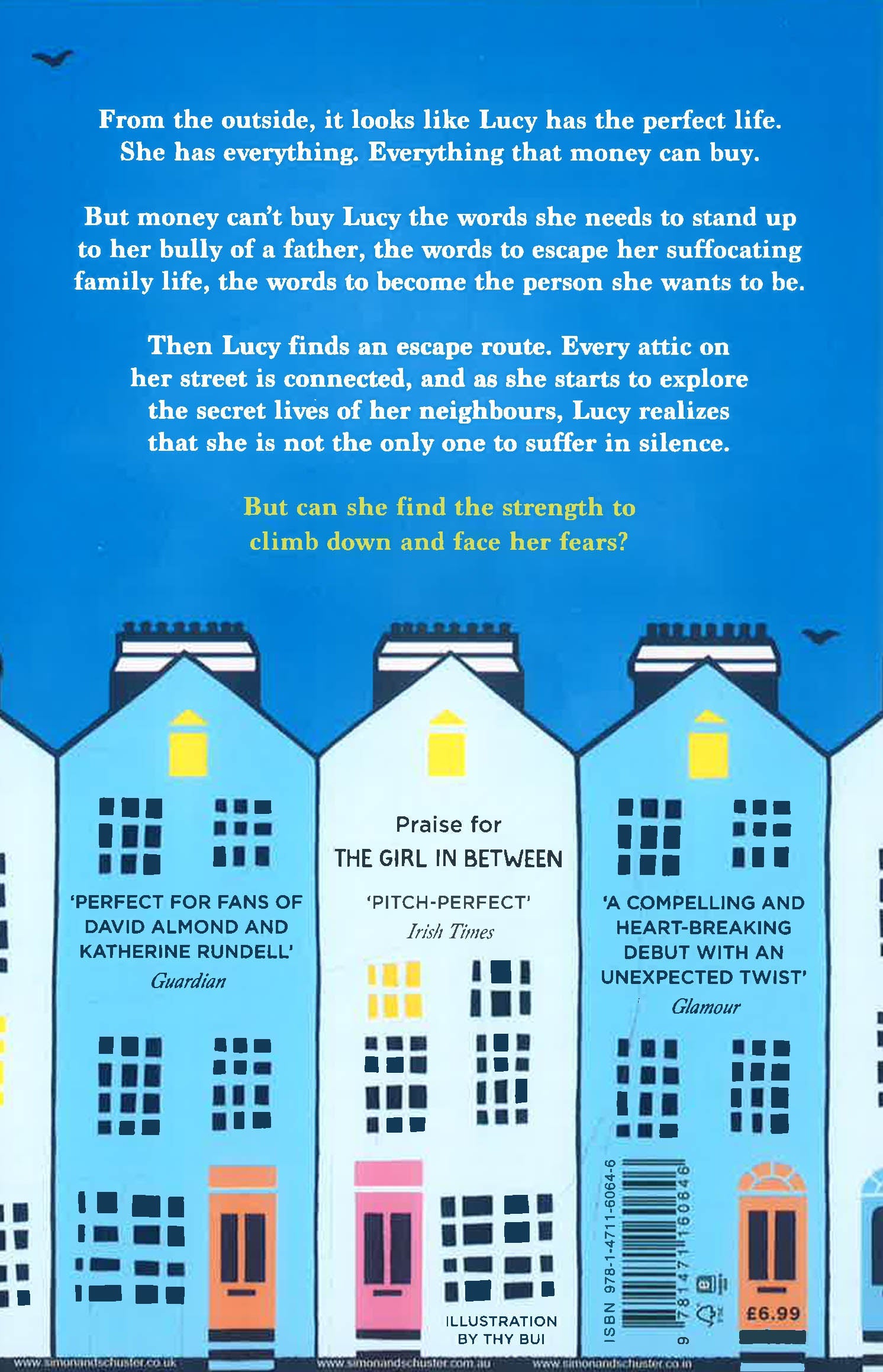 Then Lucy finds an escape route. Every attic on her street is connected, and as she starts to explore the secret lives of her neighbours, Lucy realizes that she is not the only one to suffer in silence.