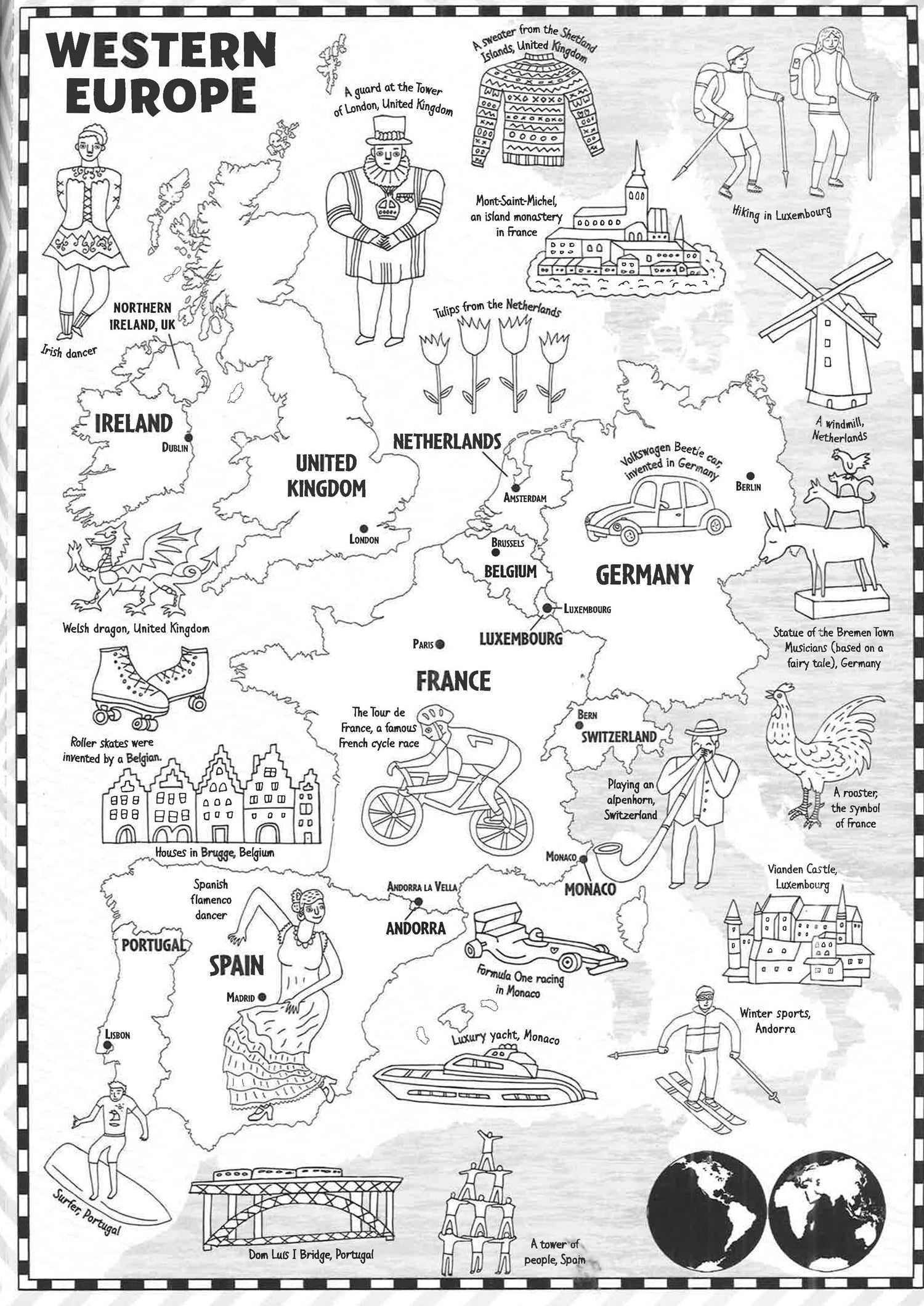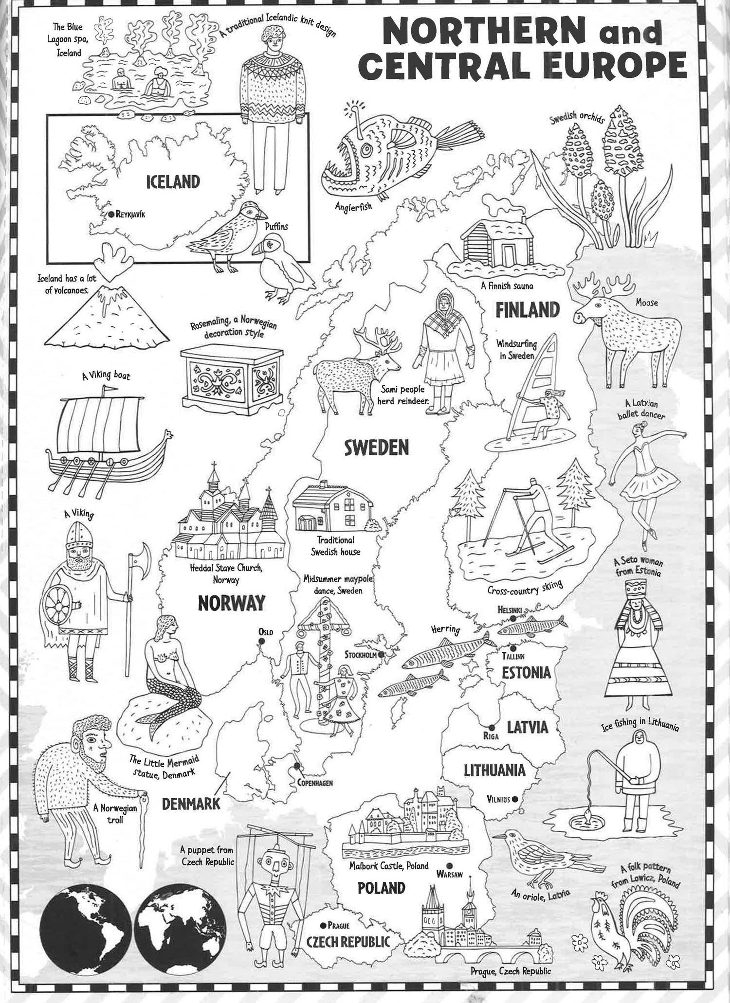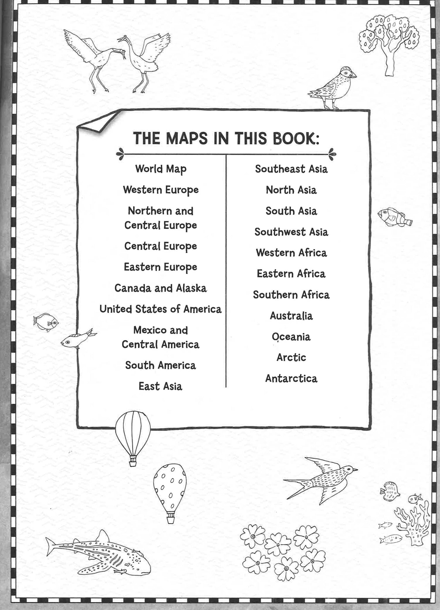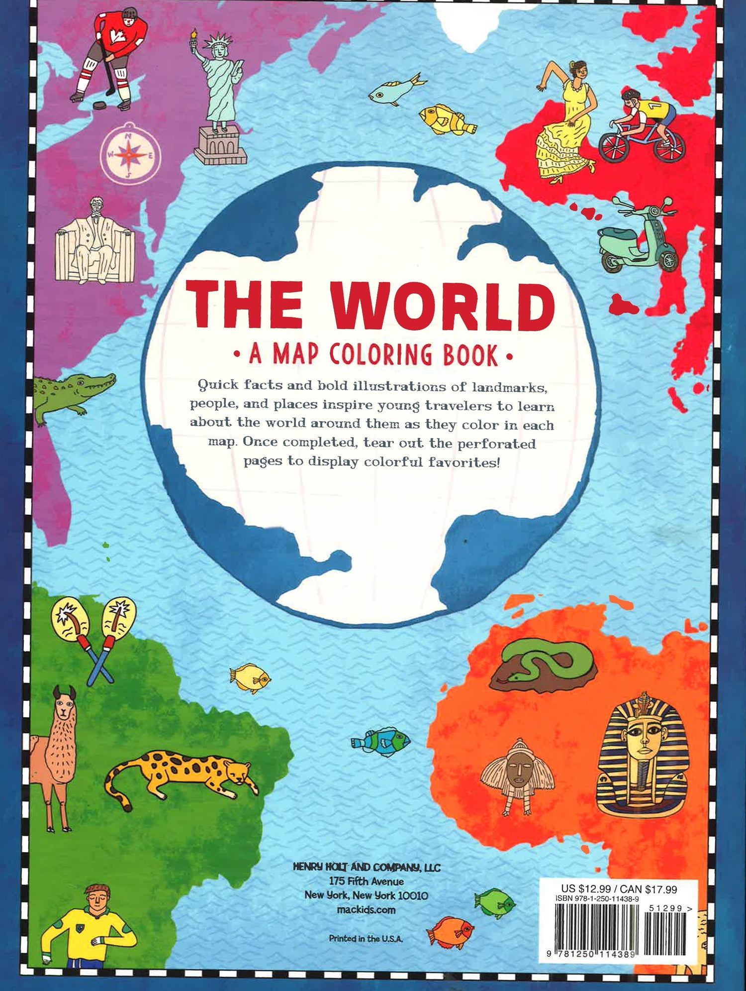 Illustrator Natalie Hughes invites you to travel the globe and add your own artistic touch to places near and dear as well as far and wide in The World: A Map Coloring Book. With forty pages of black and white line drawing locations enhanced with historical facts, you can color your way around the world and discover the landmarks, animals, and people that make each country and continent unique.