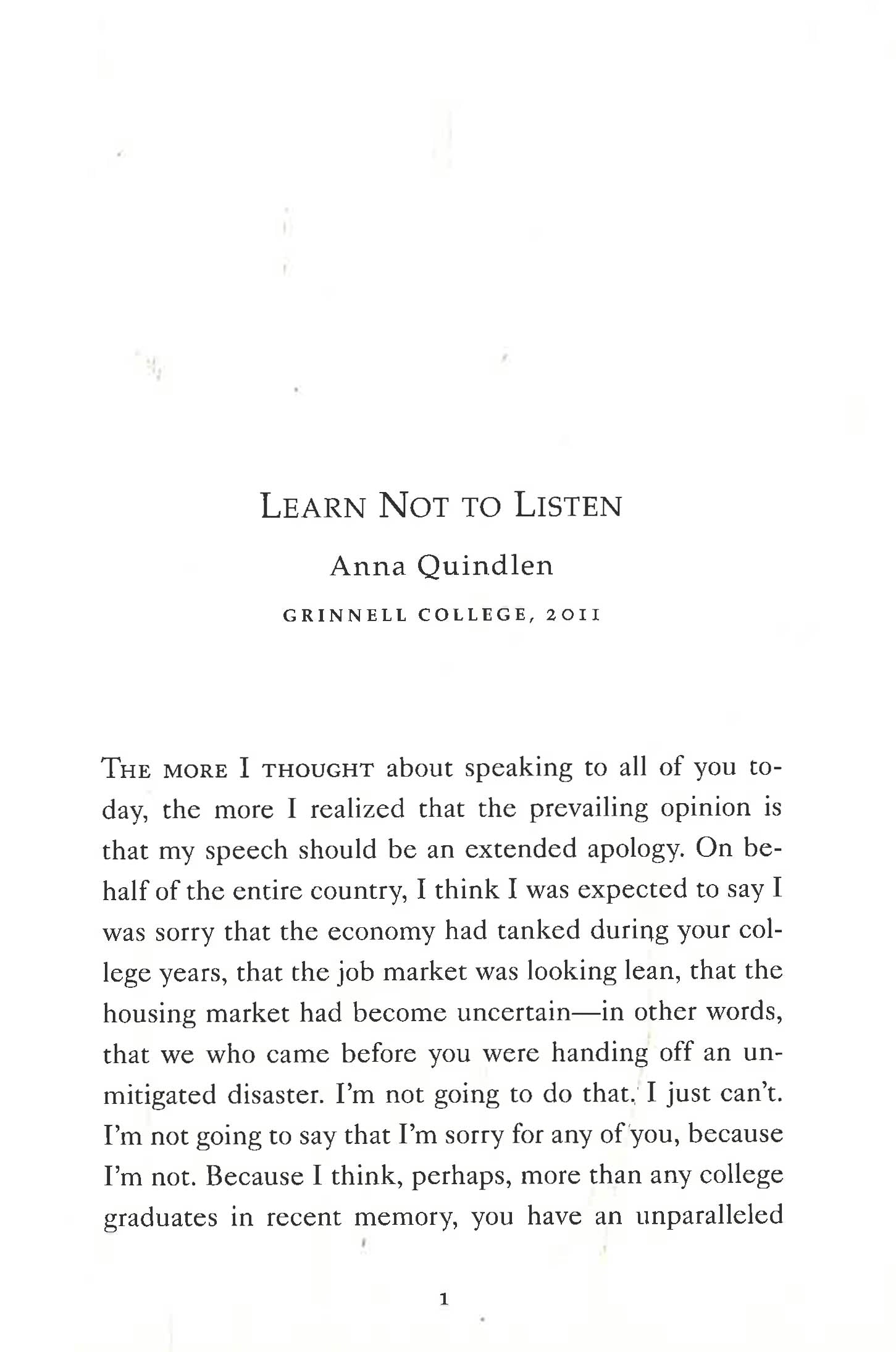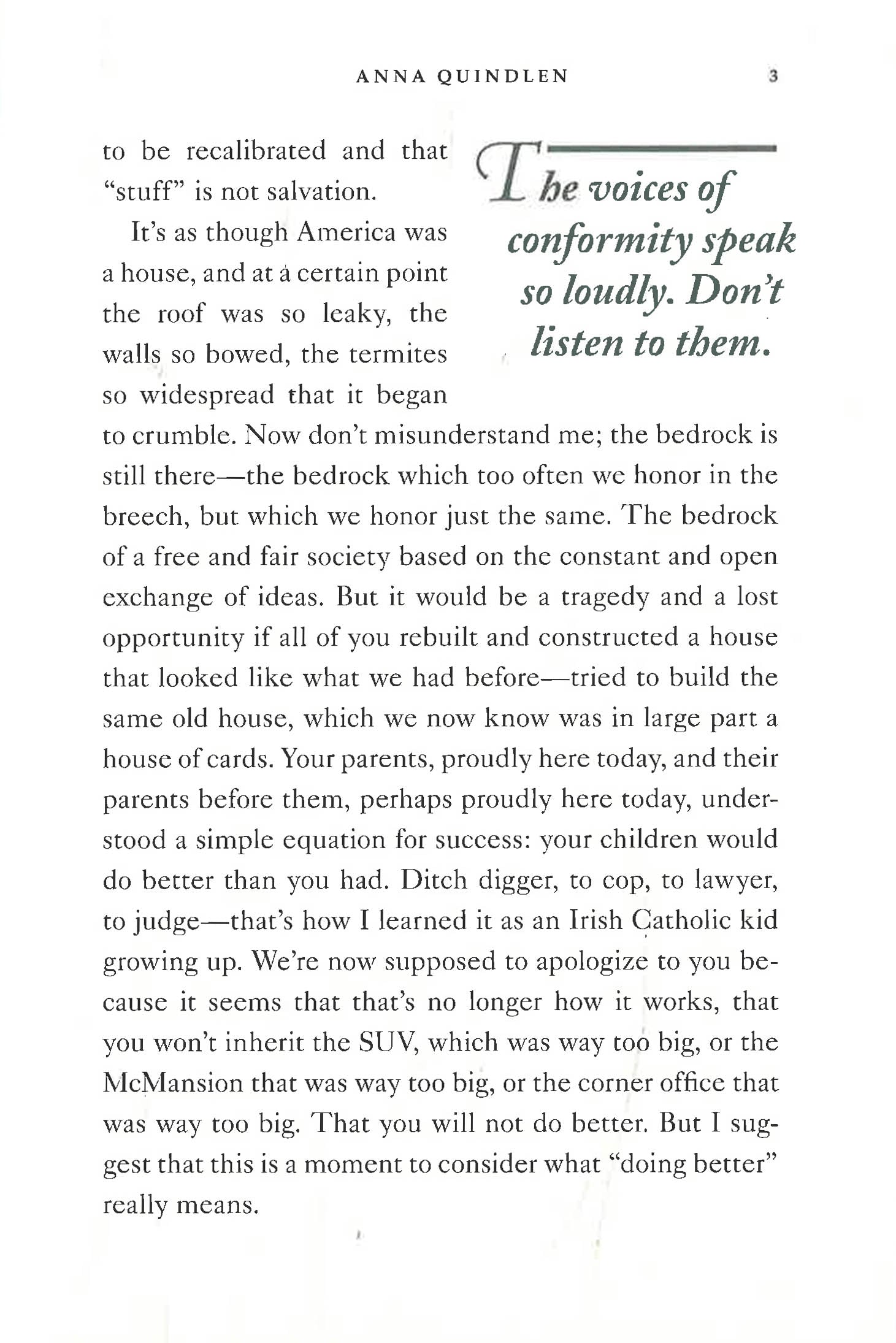 “The voices of conformity speak so loudly. Don’t listen to them,” acclaimed author and award-winning journalist Anna Quindlen cautioned graduates of Grinnell College. Jazz virtuoso and educator Wynton Marsalis advised new Connecticut College alums not to worry about being on time, but rather to be in time―because “time is actually your friend. He don’t come back because he never goes away.” And renowned physician and humanitarian Paul Farmer revealed at the University of Delaware his remarkable discovery―the new disease Empathy Deficit Disorder―and assured the commencers it could be cured.