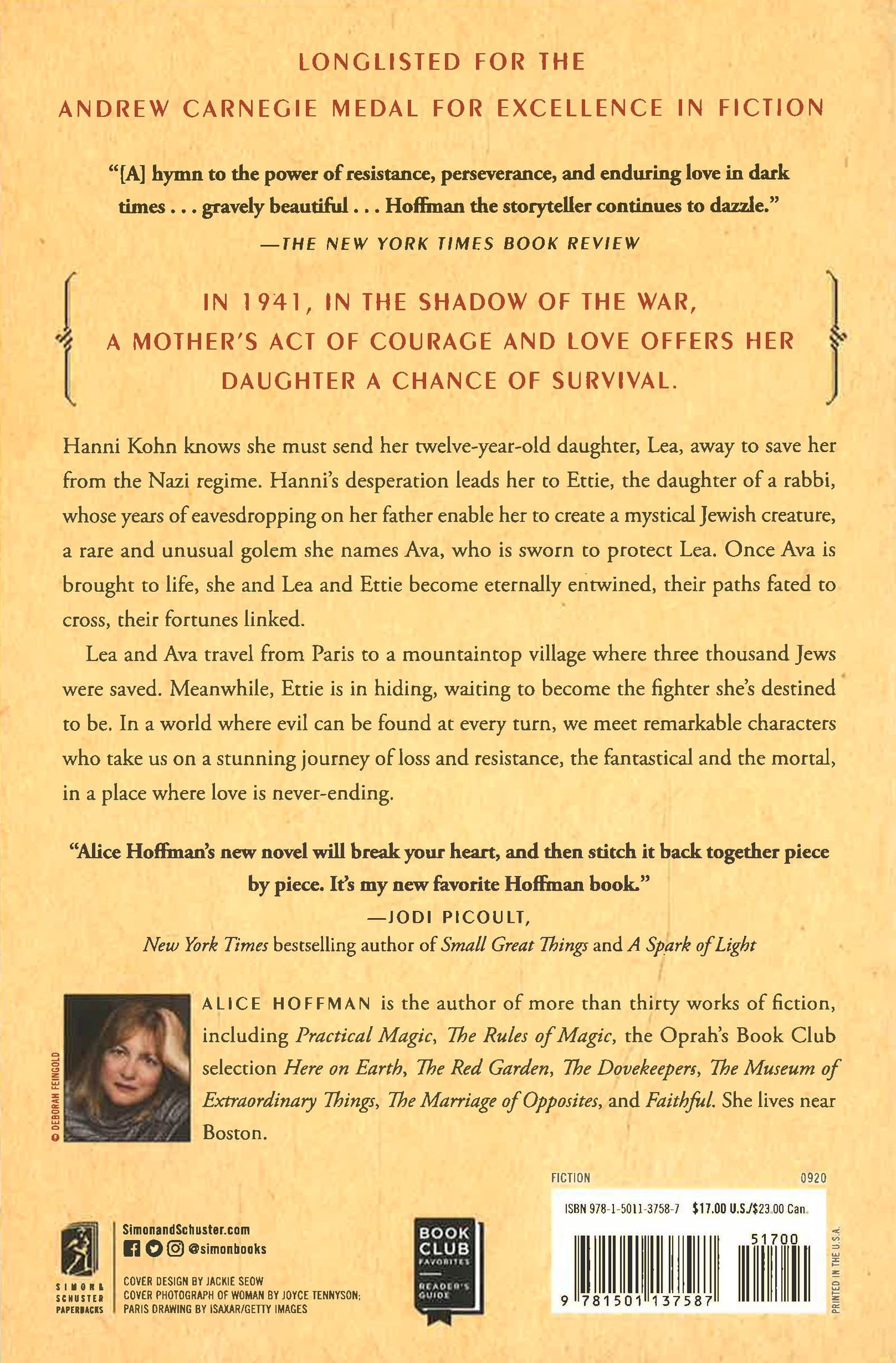At the time when the world changed, Hanni Kohn knows she must send her twelve-year-old daughter away to save her from the Nazi regime. Her desperation leads her to Ettie, the daughter of a rabbi whose years spent eavesdropping on her father enables her to create a mystical Jewish creature, a rare and unusual golem, who is sworn to protect Hanni’s daughter, Lea. Once Ava is brought to life, she and Lea and Ettie become eternally entwined, their paths fated to cross, their fortunes linked.