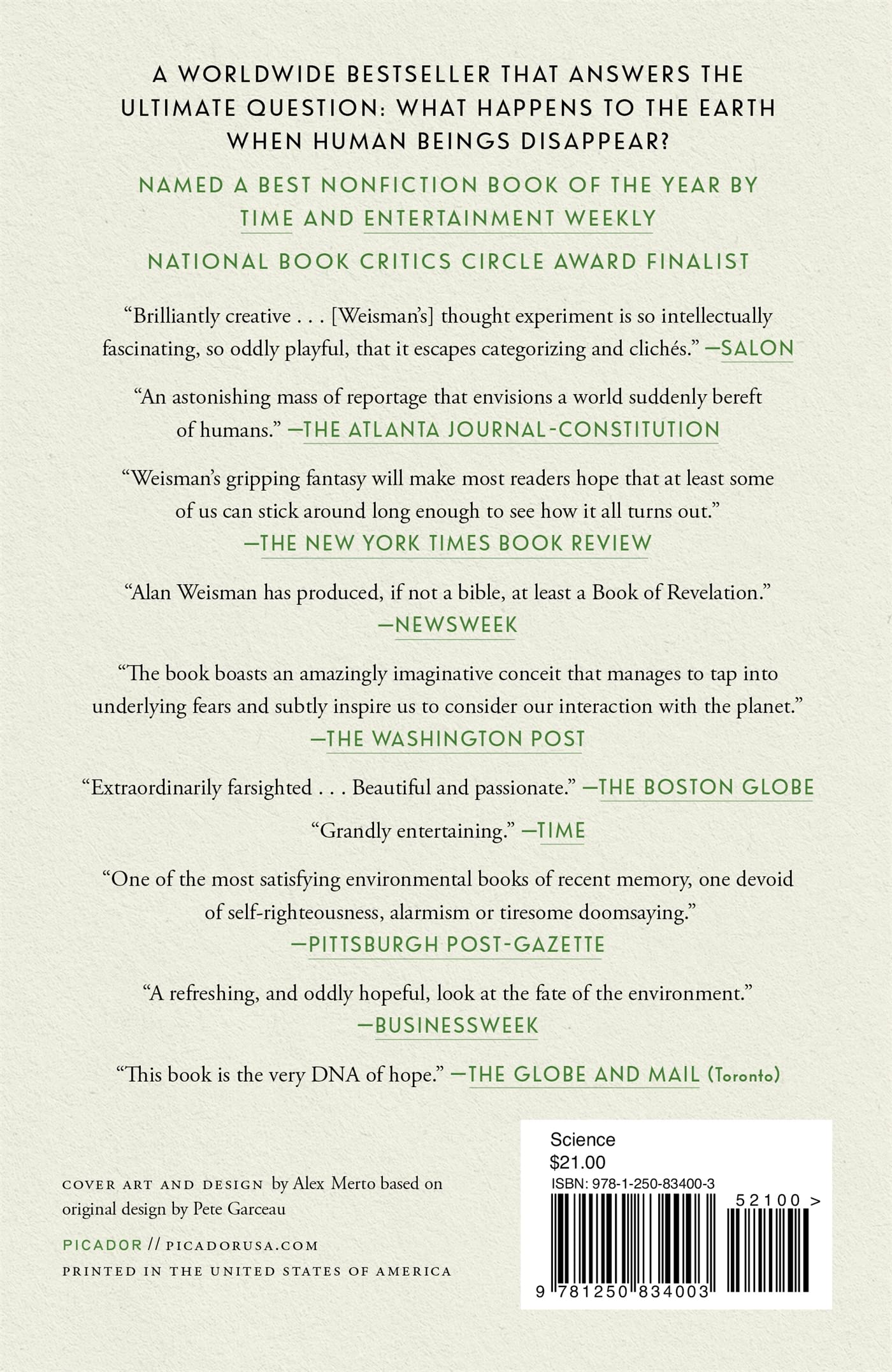 Weisman reveals Earth's tremendous capacity for self-healing and shows which human devastations are indelible and what of our highest art and culture would endure longest. Ultimately reaching a radical but persuasive solution to our planet's problems - one that needn't depend on our demise - this is narrative nonfiction at its finest, taking on an irresistible concept with gravity but a highly accessible touch.