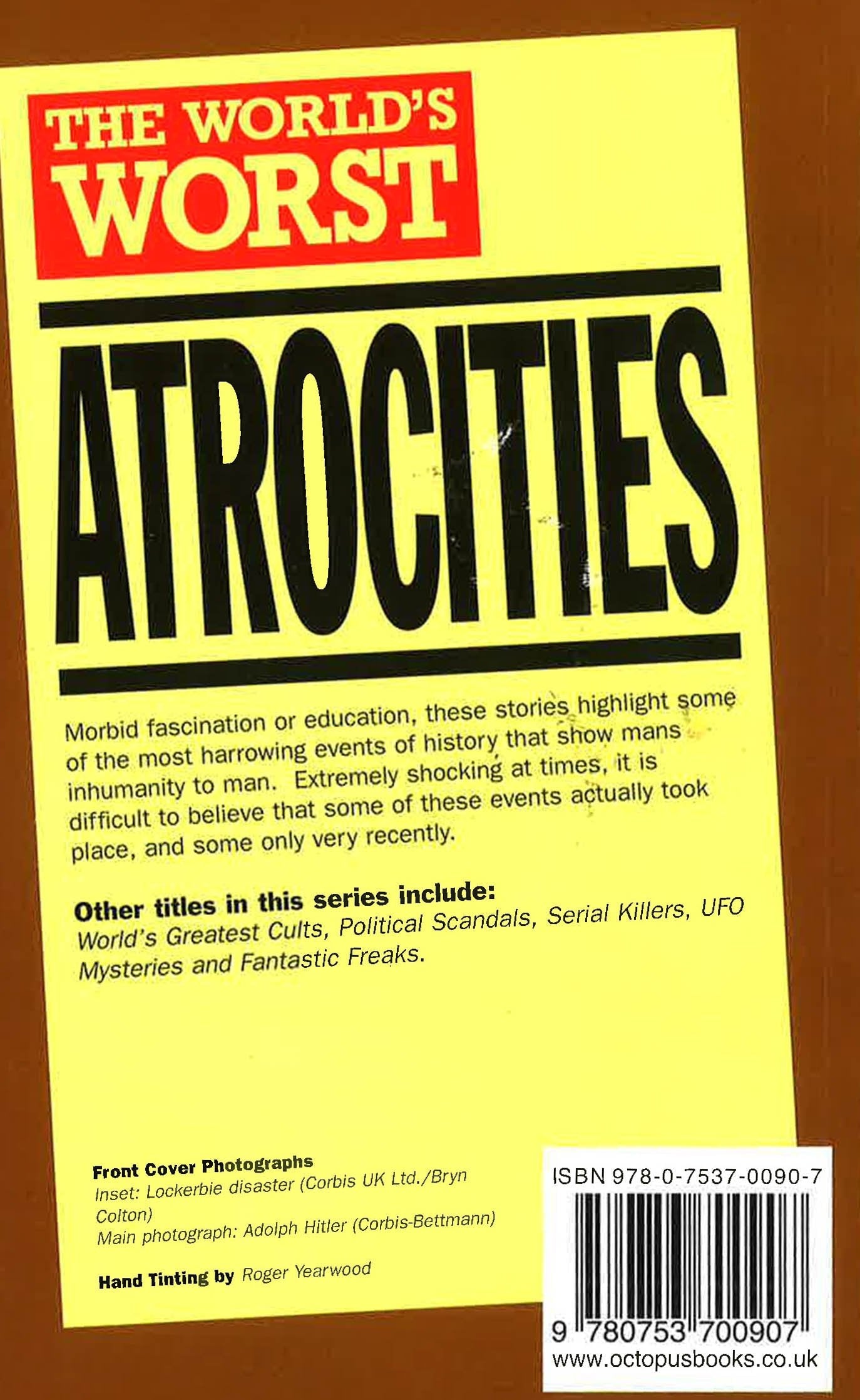 Morbid fascination or education, these stories highlight some of the most harrowing events of history that show mans inhumanity to man. Extremely shocking at times, it is difficult to believe that some of these events actually took place, and some only very recently.