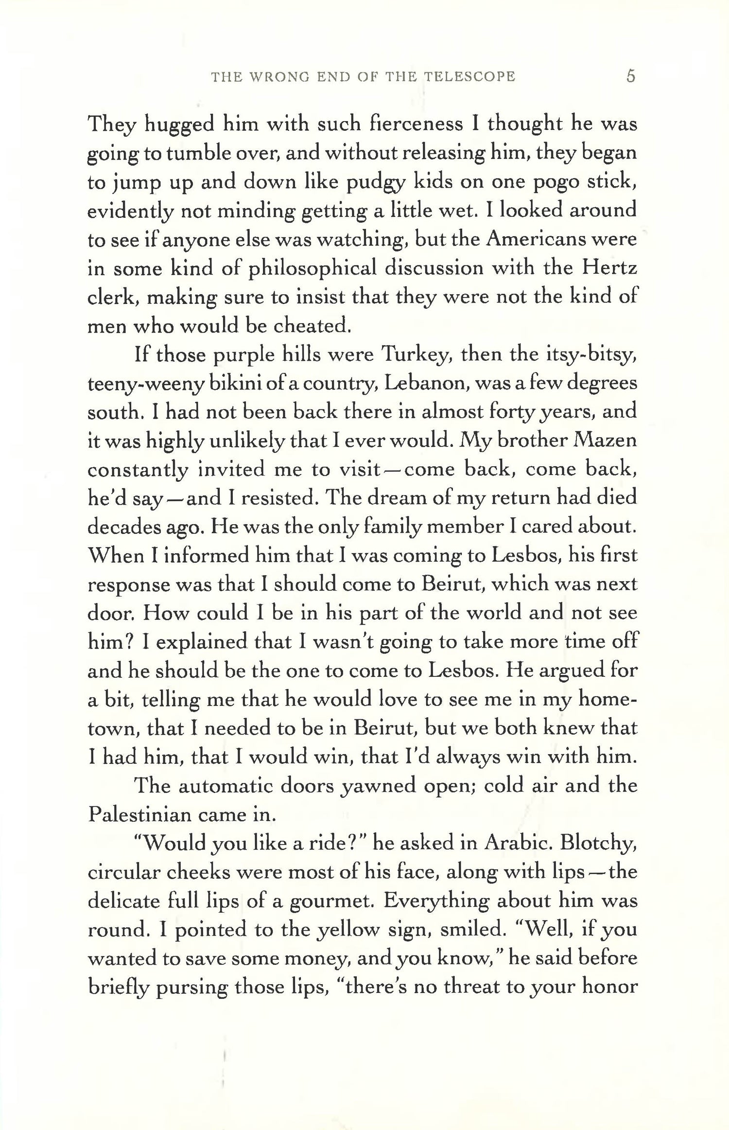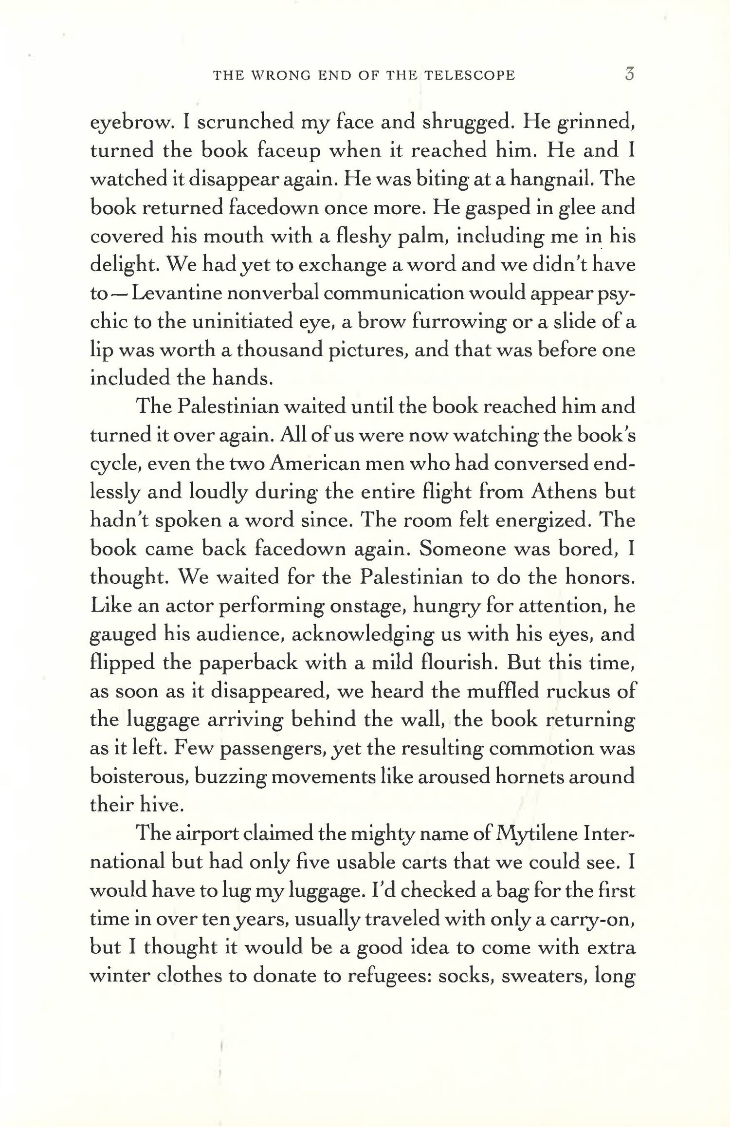 Not since the inimitable Aaliya of An Unnecessary Woman has Rabih Alameddine conjured such a winsome heroine to lead us to one of the most wrenching conflicts of our time. Cunningly weaving in stories of other refugees into Mina's singular own, The Wrong End of the Telescope is a bedazzling tapestry of both tragic and amusing portraits of indomitable spirits facing a humanitarian crisis.