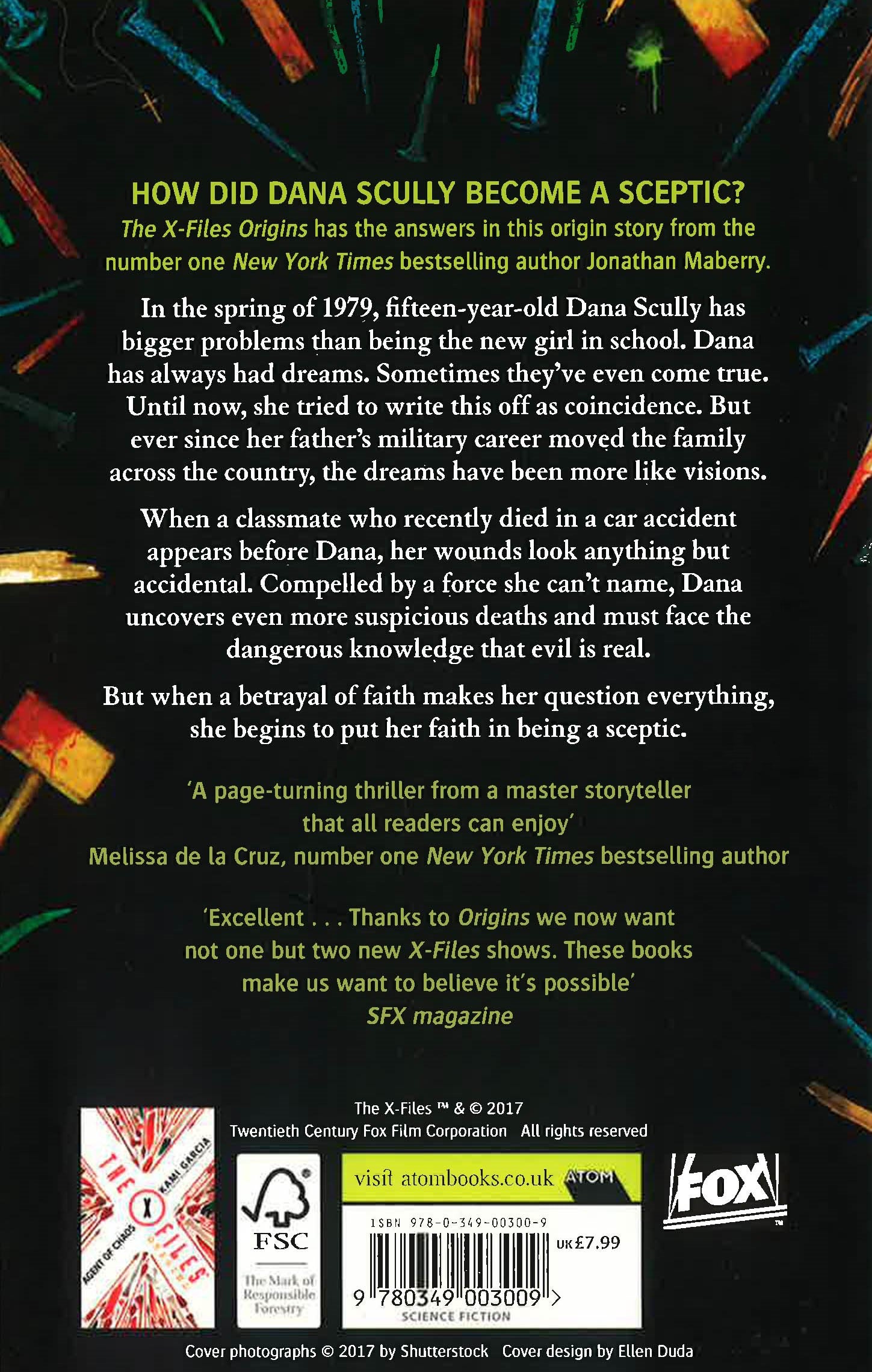 How did Fox Mulder become a believer? How did Dana Scully become a skeptic? The X-Files Origins has the answers in this young adult origin story. Excellent . . . thanks to this we now want two new X-Files shows' SFX magazineHow did Dana Scully become a skeptic?In the spring of 1979, fifteen-year-old Dana Scully has bigger problems than being the new girl in school. Dana has always had dreams. Sometimes they've even come true. Until now, she tried to write this off as coincidence. But ever since her father's military career moved the family across the country to Craiger, Maryland, the dreams have been more like visions. Vivid, disturbing, and haunted by a shadowy figure who may be an angel . . . or the devil.When a classmate who recently died in a car accident appears before Dana, her wounds look anything but accidental. Compelled by a force she can't name, Dana uncovers even more suspicious deaths?and must face the danger-ous knowledge that evil is real.But when a betrayal of faith makes her question everything, she begins to put her faith in being a skeptic.