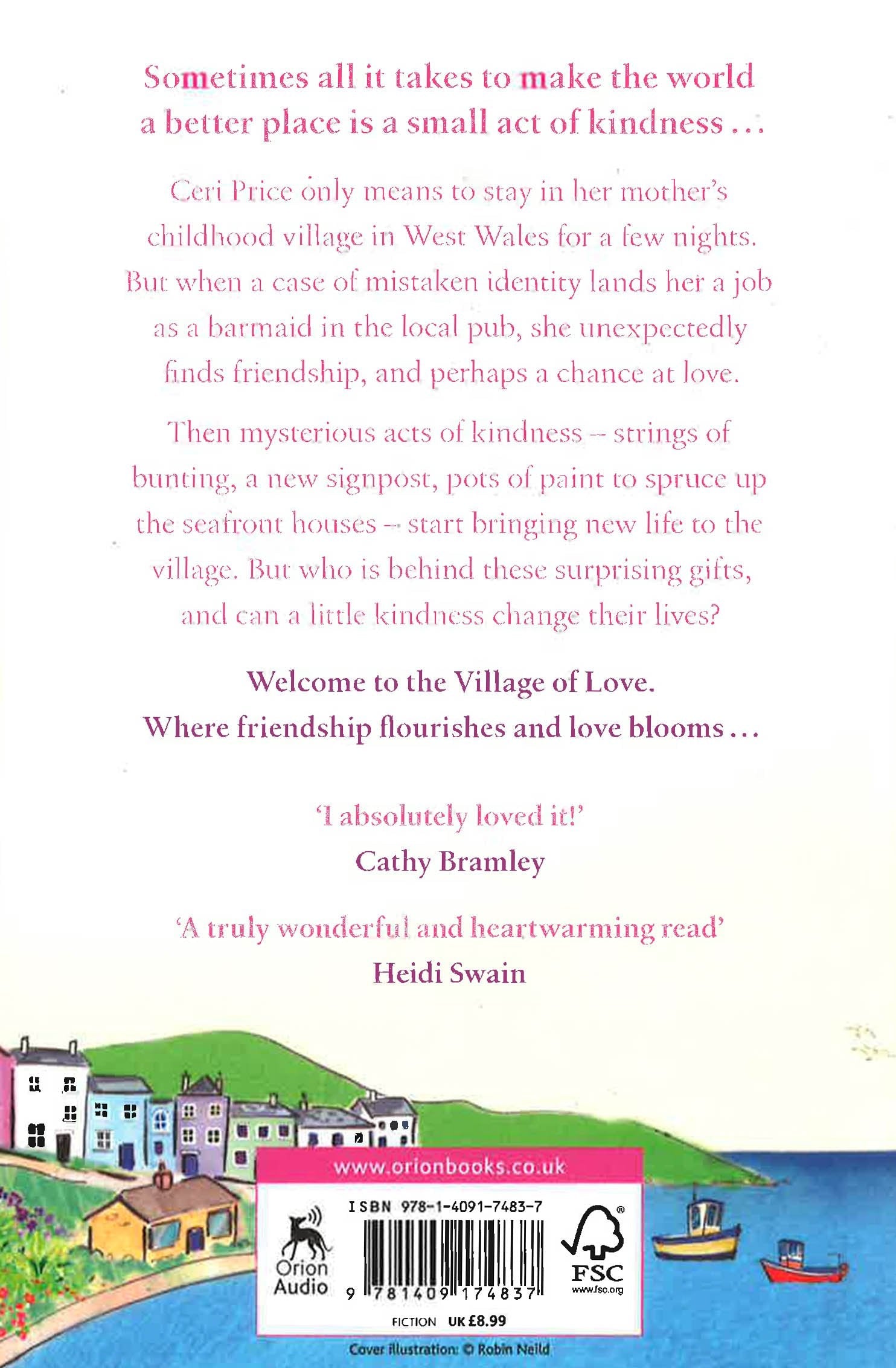 The perfect feel-good read for fans of Milly Johnson, Lucy Diamond and Jenny Colgan When Ceri Price arrives in the small seaside village in West Wales, she only means to stay for a couple of nights - long enough to scatter her mother's ashes, and then go back to her life as a successful make-up entrepreneur.But when a case of mistaken identities means she lands a job as the barmaid in the local pub, she unexpectedly finds friendship, and perhaps a chance at love. But when the plans for a new housing estate put the local woodland under threat, she fears the way of life here could disappear. Then mysterious acts of kindness start springing up around the village - a string of bunting adorns the streets, a new village signpost appears out of nowhere and someone provides paint to spruce up the houses on the seafront. Who is behind these acts of kindness and can they help in the race to save the village from the faceless developers...? Welcome to the Village of Love. Where friendship flourishes and love blossoms...