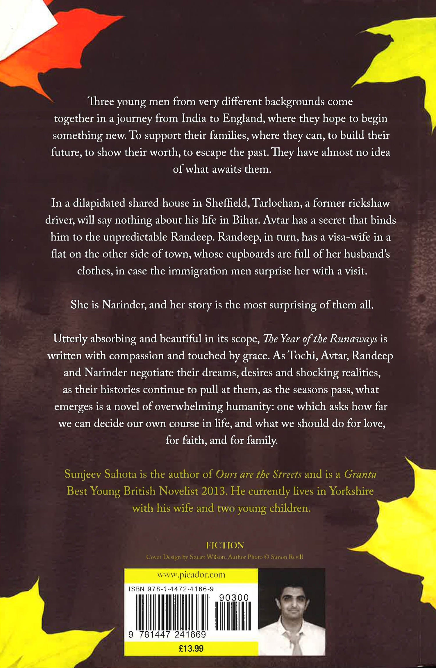 The Year of the Runaways tells of the bold dreams and daily struggles of an unlikely family thrown together by circumstance. Thirteen young men live in a house in Sheffield, each in flight from India and in desperate search of a new life. Tarlochan, a former rickshaw driver, will say nothing about his past in Bihar; and Avtar has a secret that binds him to protect the chaotic Randeep. Randeep, in turn, has a visa-wife in a flat on the other side of town: a clever, devout woman whose cupboards are full of her husband's clothes, in case the immigration men surprise her with a call.