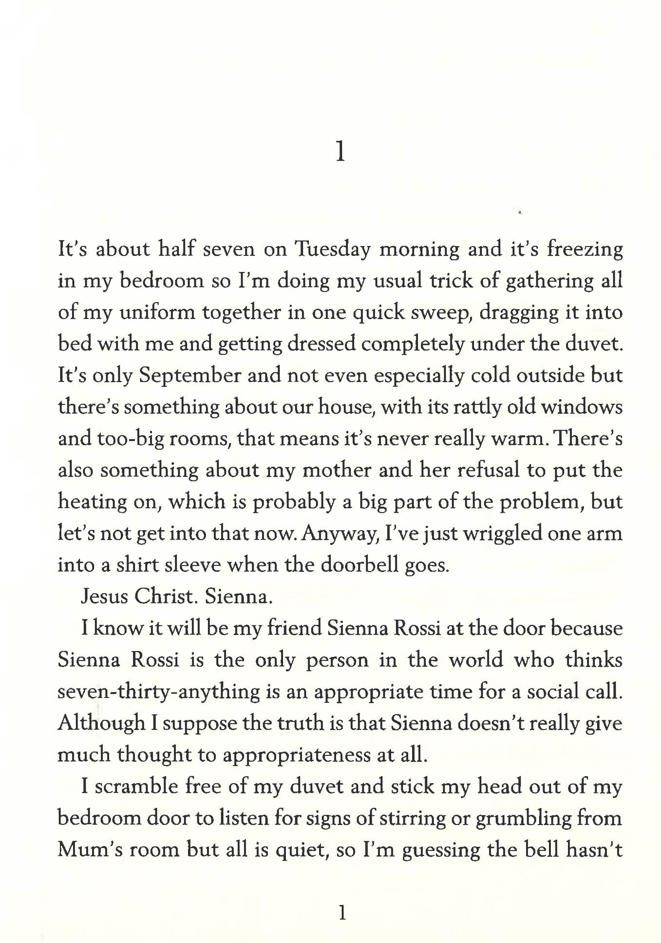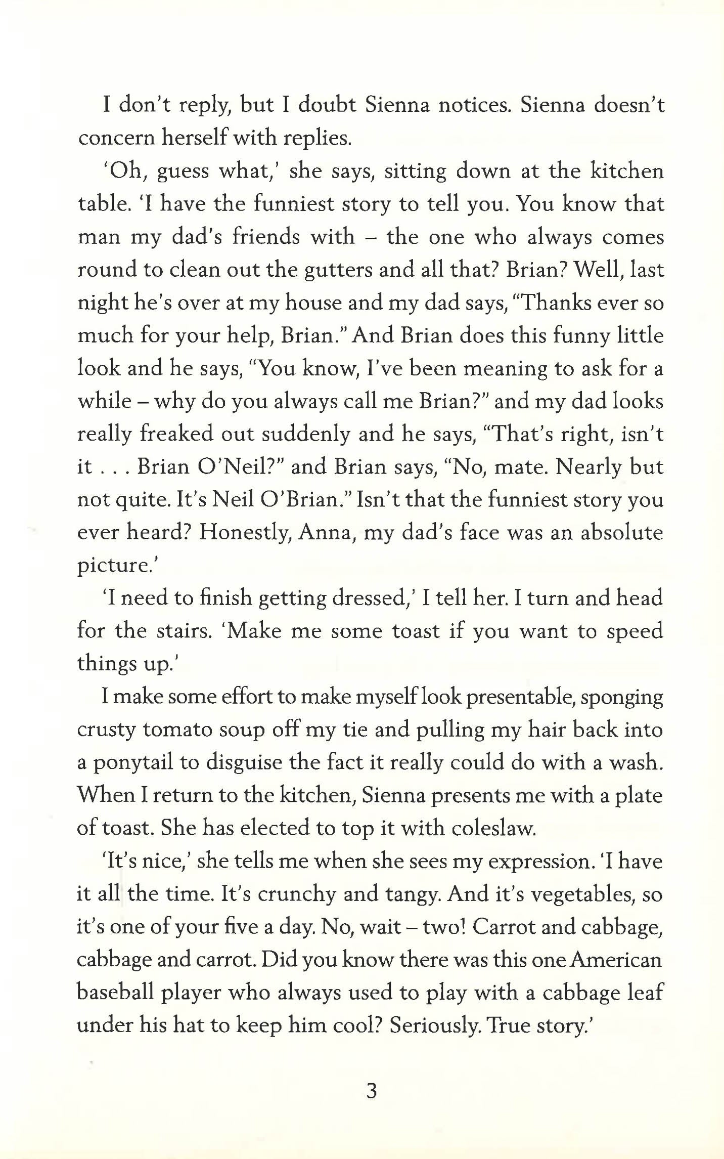 If you receive a letter telling you your father has died, what do you do? Anna's father left when she was very young and Anna, now 16, is living with her ambitious, unemotional, scientist mother. Then she receives a letter from her father's current girlfriend, Edie, with some shocking news: her father has died. Edie would like to meet Anna because she has something for her from her father.