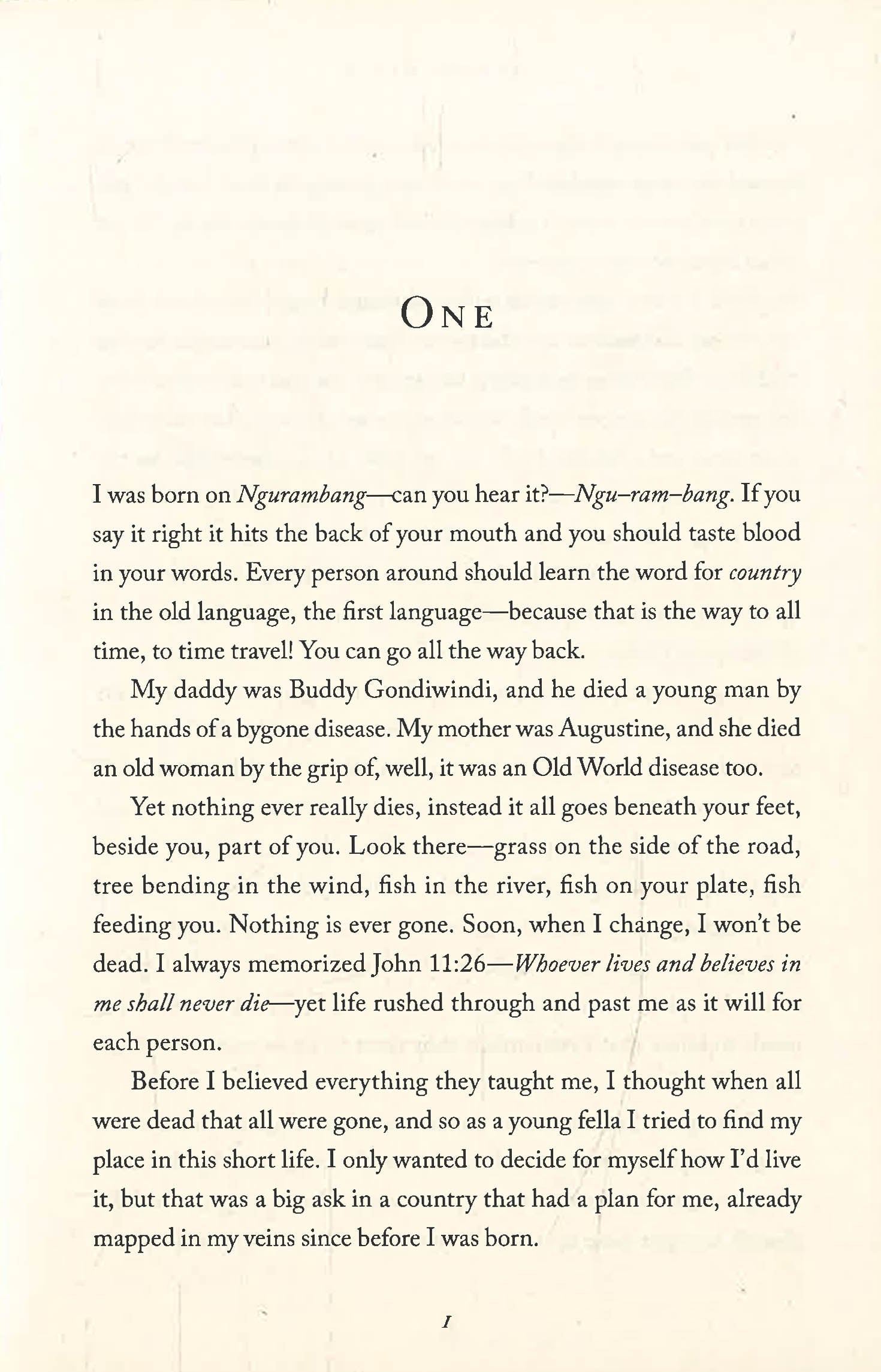Knowing that he will soon die, Albert “Poppy” Gondiwindi has one final task he must fulfill. A member of the indigenous Wiradjuri tribe, he has spent his adult life in Prosperous House and the town of Massacre Plains, a small enclave on the banks of the Murrumby River. Before he takes his last breath, Poppy is determined to pass on the language of his people, the traditions of his ancestors, and everything that was ever remembered by those who came before him. The land itself aids him; he finds the words on the wind.