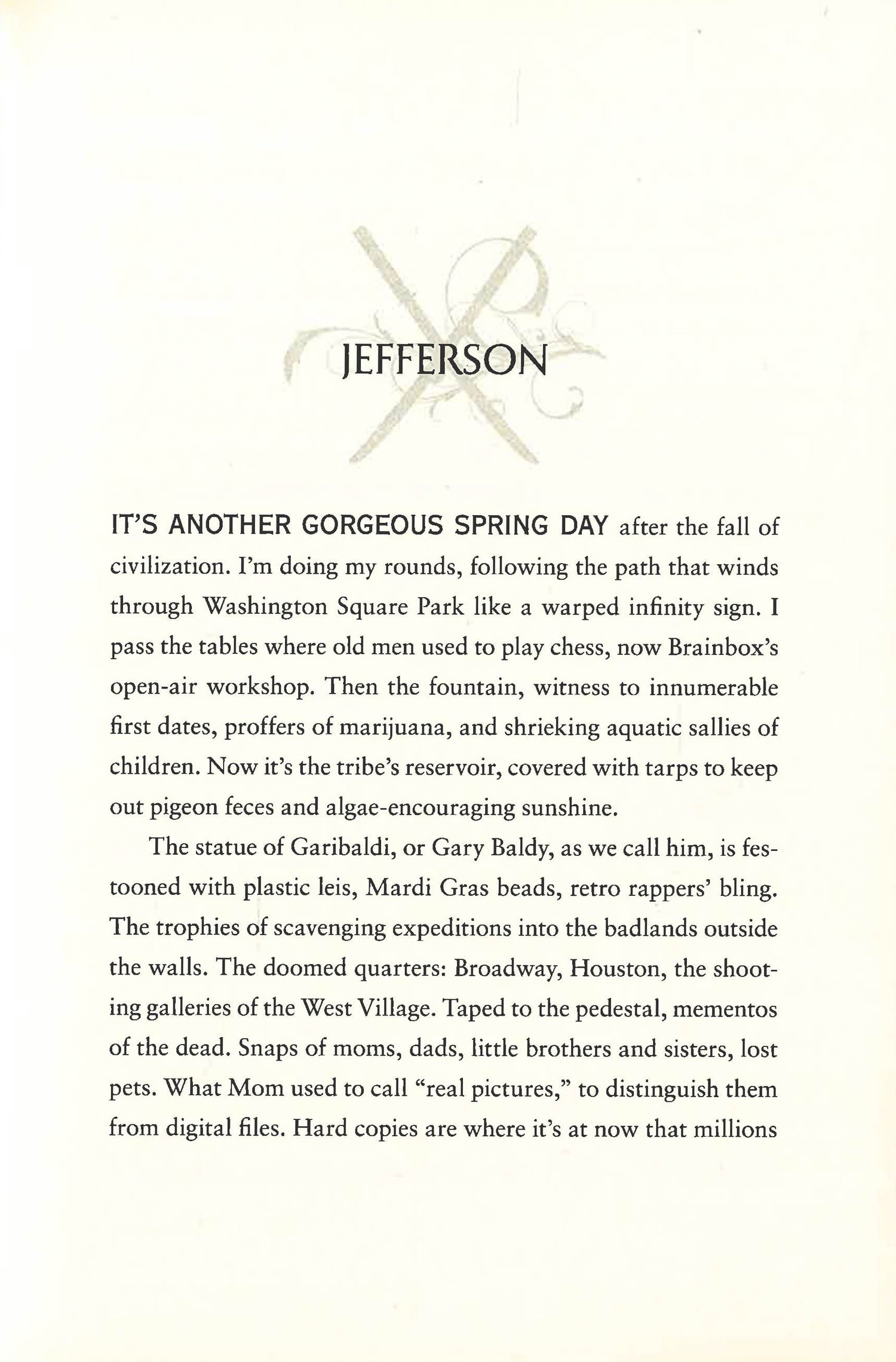 After a mysterious Sickness wipes out the rest of the population, the young survivors assemble into tightly run tribes. Jefferson, the reluctant leader of the Washington Square tribe, and Donna, the girl he's secretly in love with, have carved out a precarious existence among the chaos.