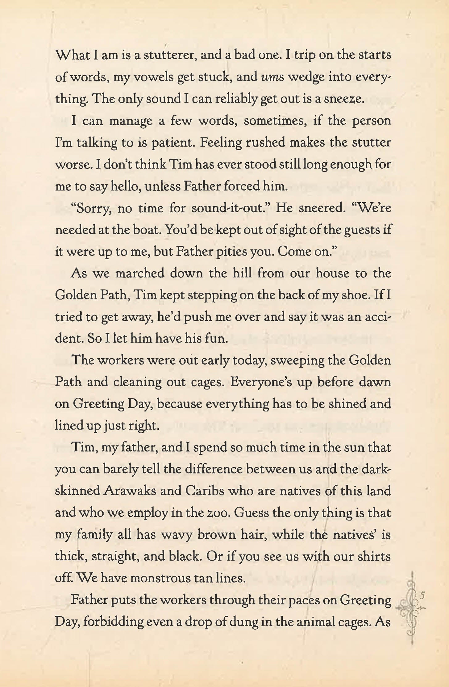 From the author of The Bully Book comes a timeless story about a young boy, his father, and the world that comes between them, which New York Times-bestselling author Peter Lerangis called "magical, mysterious, fresh, original, and full of heart." Marlin is not slow, or mute; what he is is a stutterer, and that makes it impossible for him to convince people otherwise. What he is also is a Rackham: the younger son of the world-famous explorer Ronan Rackham, the owner and proprietor of the Zoo at the Edge of the World, a resort where the well-to-do from all over the globe can come to experience the last bit of the wild left at the end of the nineteenth century. In order to impress a powerful duke who comes to visit the zoo, Marlin's father ventures into the jungle and brings back a mysterious black jaguar, the only one in captivity. Everyone is terrified of it, including Marlin--until one night, when the jaguar confers upon him a powerful gift. Soon, Marlin finds himself with a difficult choice to make and, finally, something to say. If only he can figure out how to say it. *This book may have remainder mark*