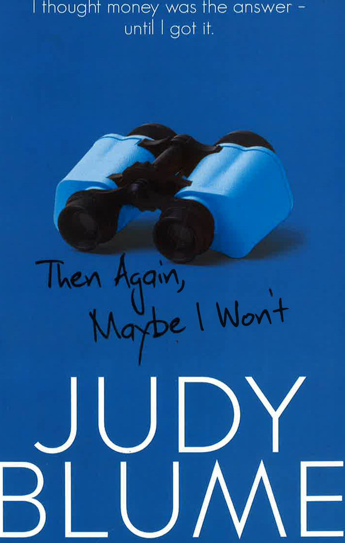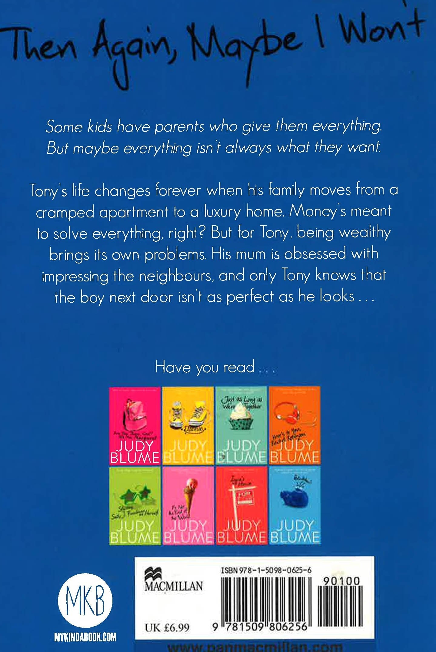 Tony Miglione is thirteen, and his family lives in a cramped house in New Jersey. But then his Dad invents something that makes them rich, and they move to a luxury home in Long Island. But being rich brings it's own problems - Tony's Grandma feels useless when she doesn't have to cook any more, and his mum is obsessed with impressing the neighbours, but Tony knows the boy next door isn't as perfect as he looks. The only upside to his new life is that his neighbour Lisa keeps undressing with the light on. As he tries to adjust to his new life Tony starts to suffer from anxiety attacks and wishes everything would just be normal again.Then Again, Maybe I Won't is a classic coming of age story from the boy's perspective, from Judy Blume, the author of Are You There, God? It's Me, Margaret.