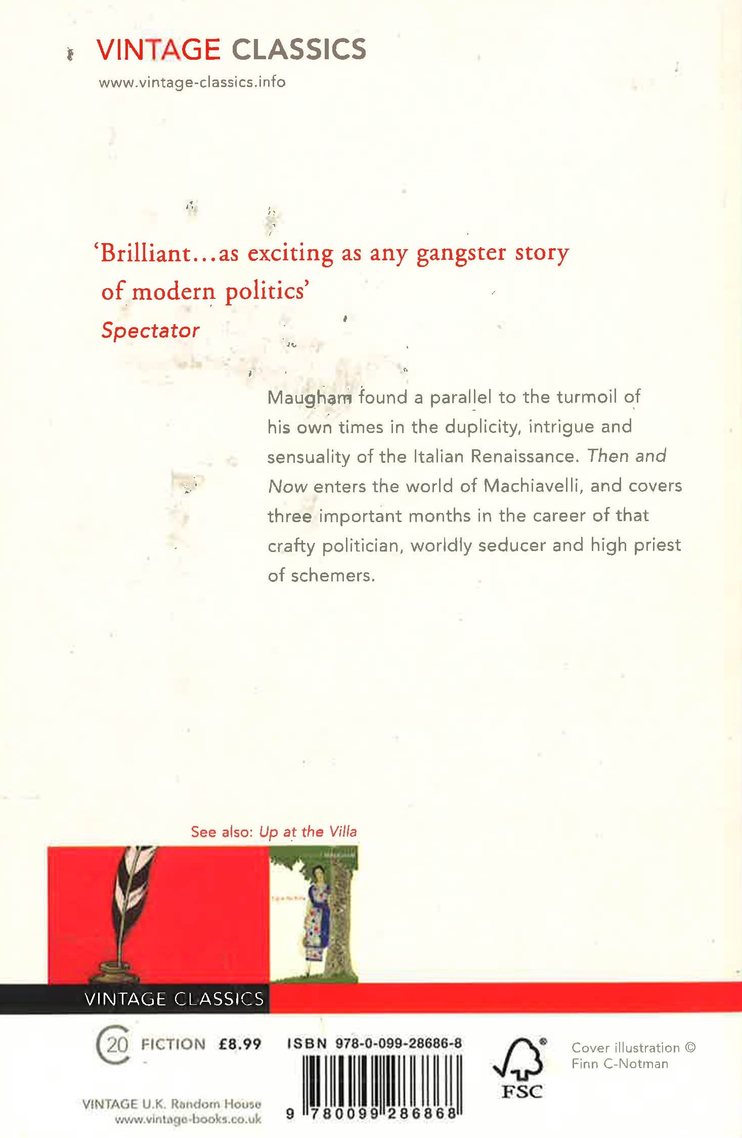 Maugham found a parallel to the turmoil of our own times in the duplicity, intrigue and sensuality of the Italian Renaissance. Then and Now enters the world of Machiavelli, and covers three important months in the career of that crafty politician, worldly seducer and high priest of schemers. Maugham found a parallel to the turmoil of our own century in the duplicity, intrigue and sensuality of the Italian Renaissance. Then and Now enters the world of Machiavelli, and covers three important months in the career of that crafty politician, worldly seducer and high priest of schemers.