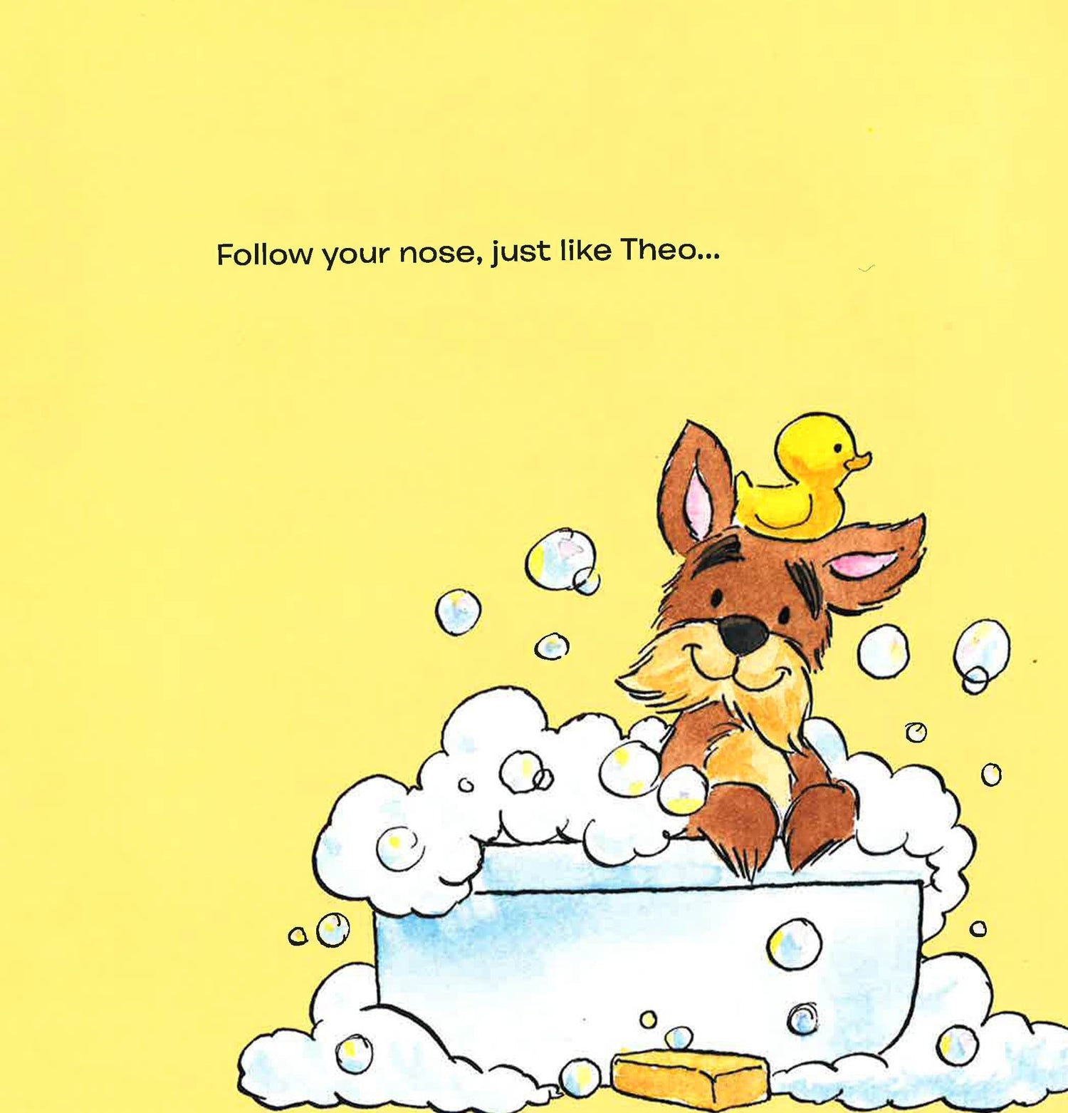 Theo has lost his sense of smell! He is determined to track it down so he heads to the seaside. Surely the aromas of candyfloss, sticky suntan lotion aqnd luscious green grass will help him find his sense of smell? Use your nose and follow the smelly trail with Theo to find out!