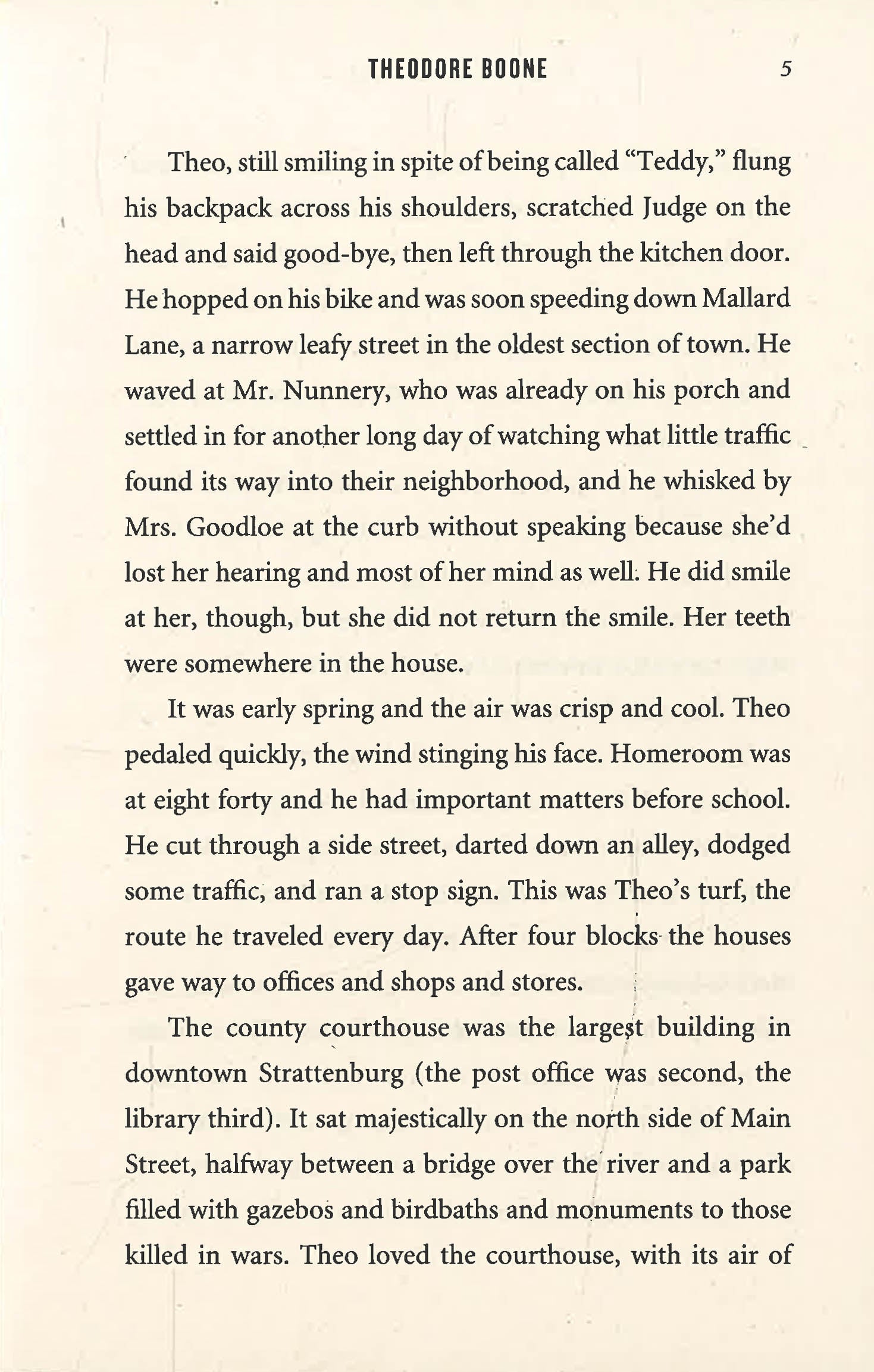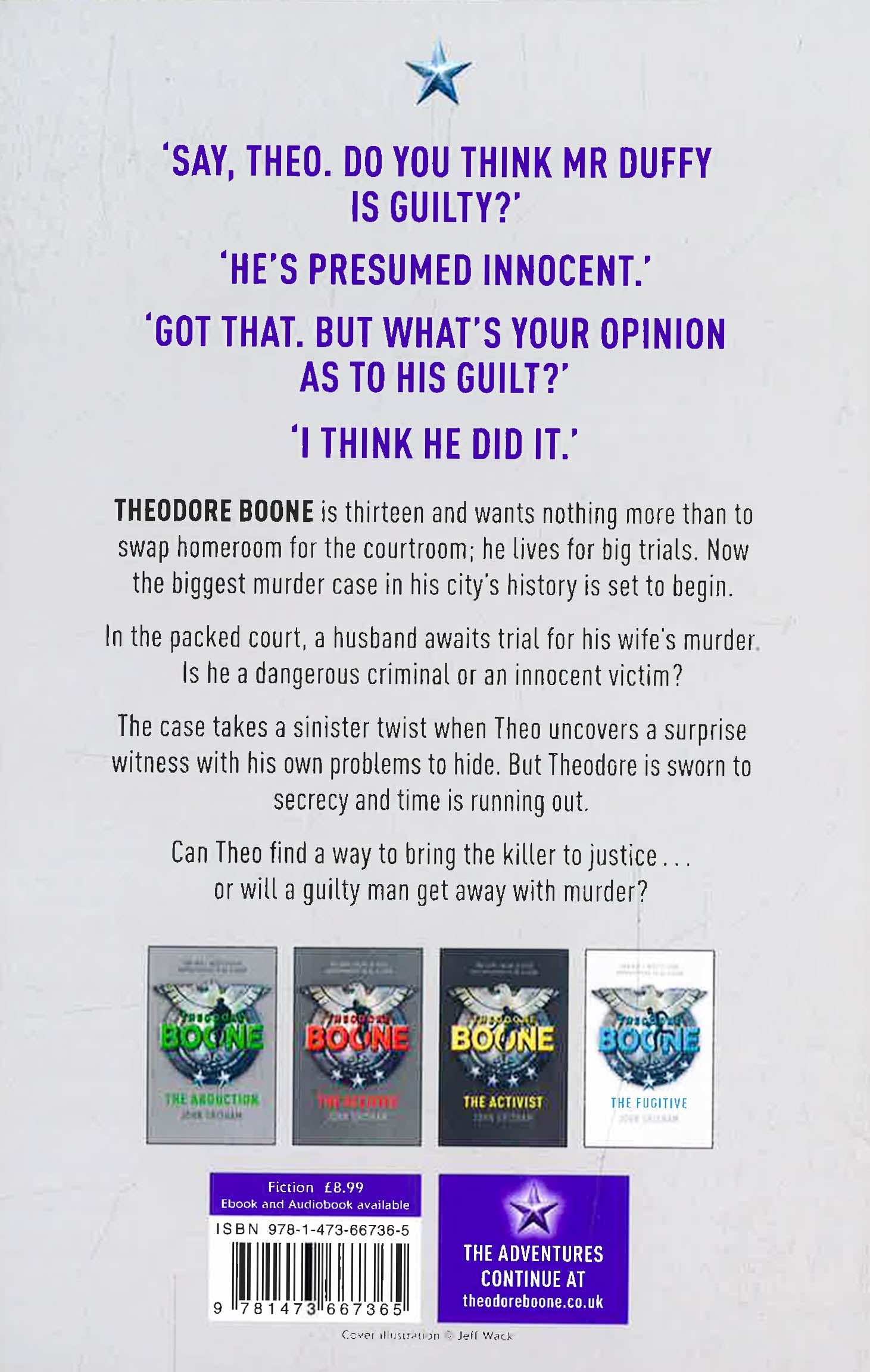 Theodore Boone is thirteen and wants nothing more than to swap homeroom for the courtroom; he lives for big trials. Now the biggest murder case in his city’s history is set to begin.